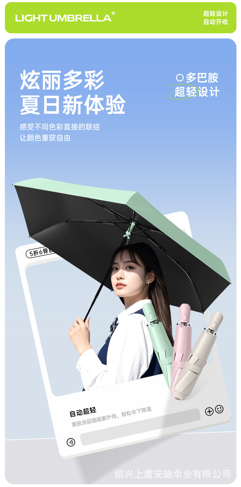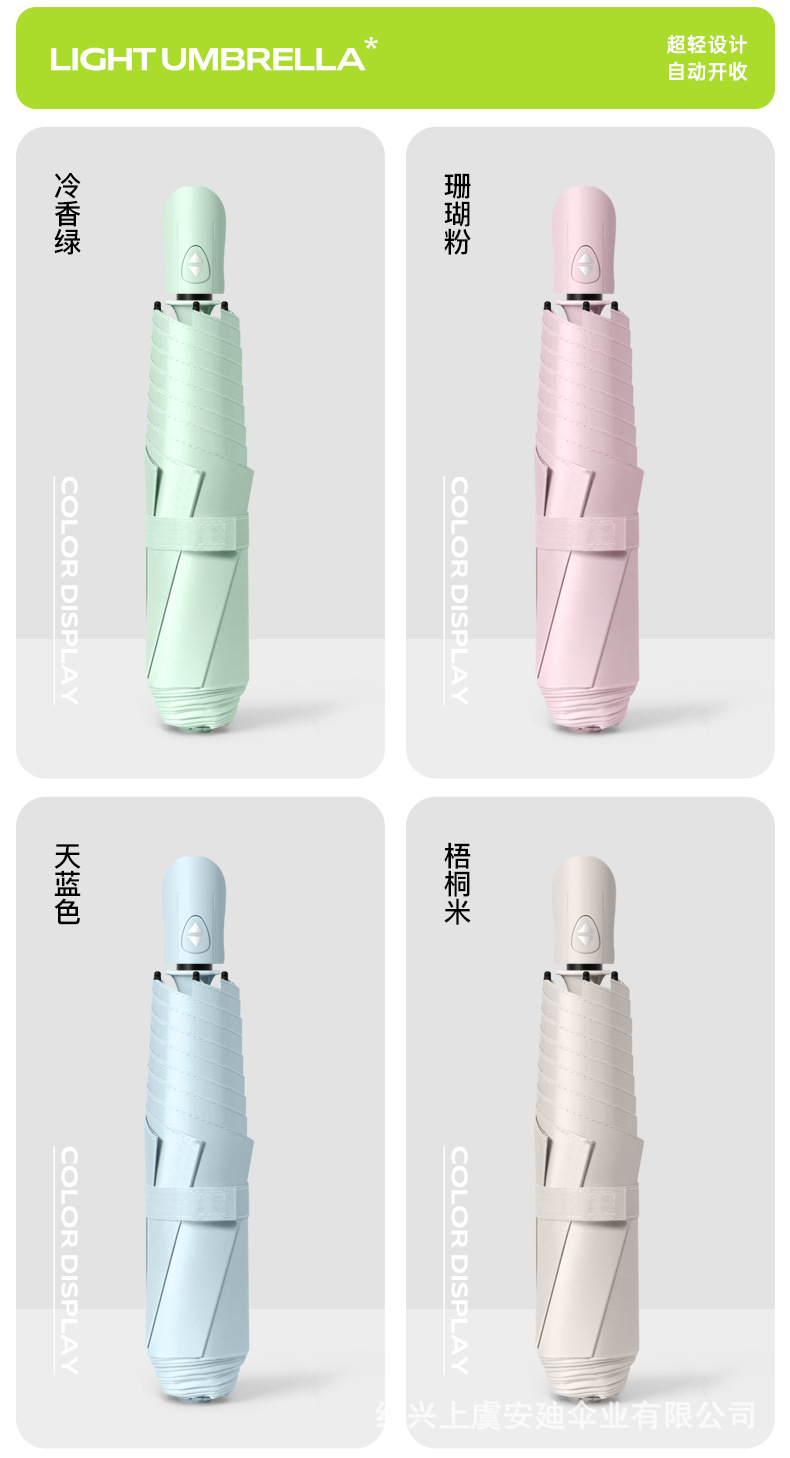 초경량 완전 자동 접이식 소형 태양 우산, 편리한 파라솔, 자외선 차단, UV 차단, 비 또는 빛 우산