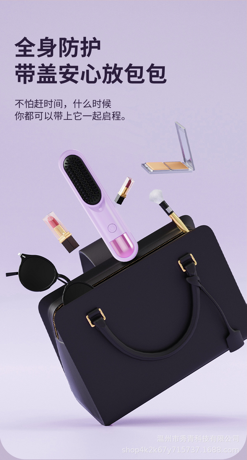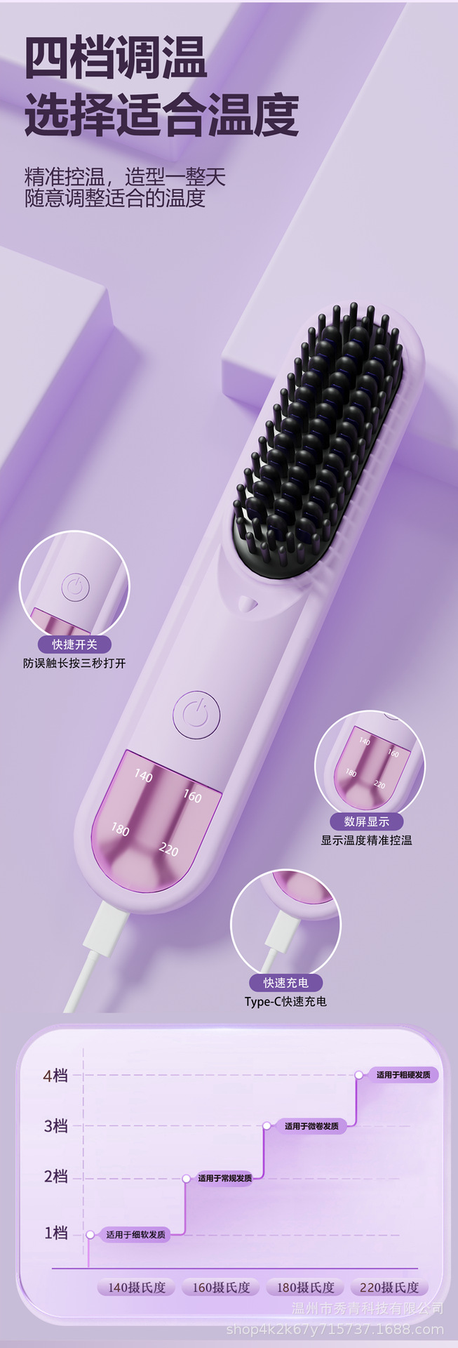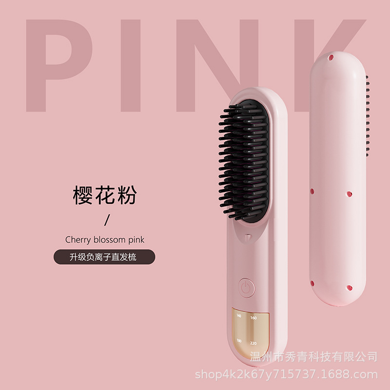 가정용 통근용 새로운 음이온 무선 헤어 스트레이트닝 빗, 직선 및 곱슬머리 겸용 컬링 아이언, 화상 방지 및 손상 방지, 충전식 모델