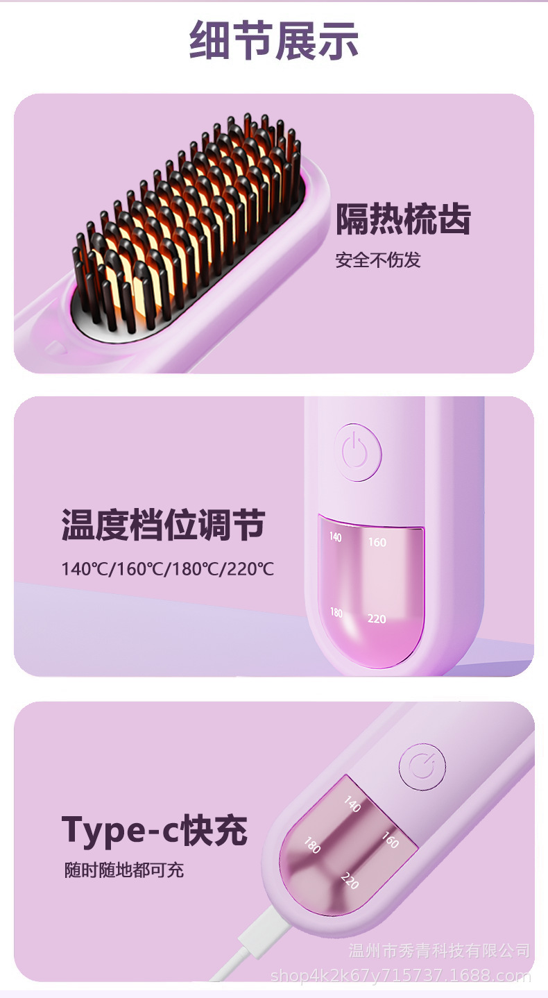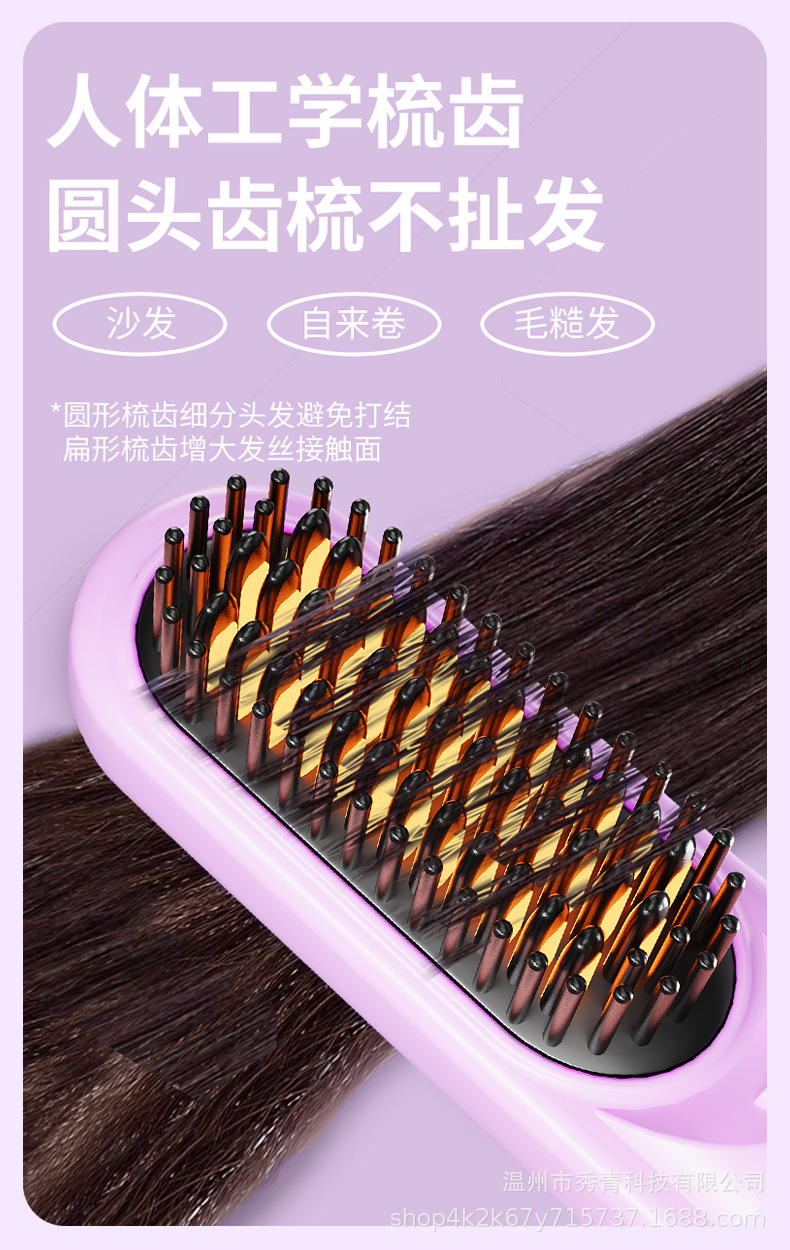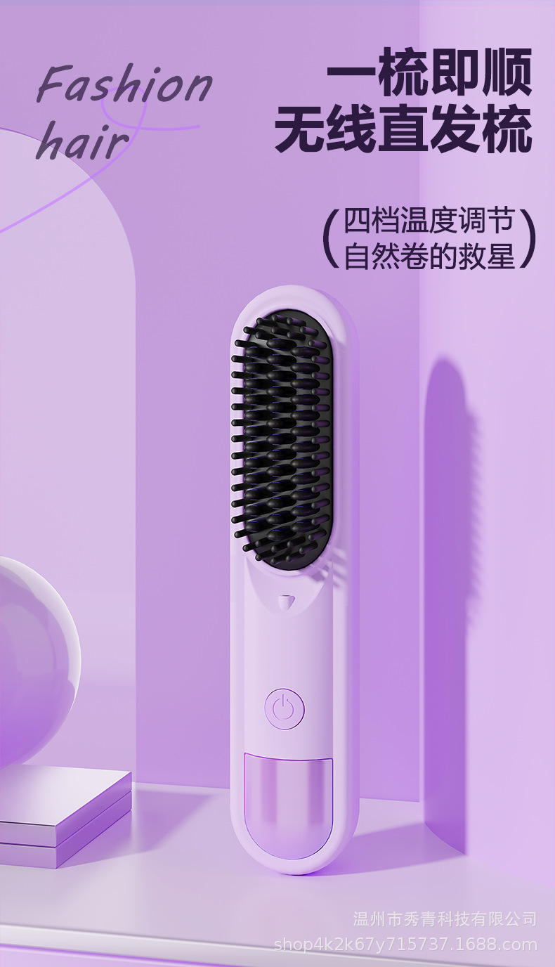 가정용 통근용 새로운 음이온 무선 헤어 스트레이트닝 빗, 직선 및 곱슬머리 겸용 컬링 아이언, 화상 방지 및 손상 방지, 충전식 모델