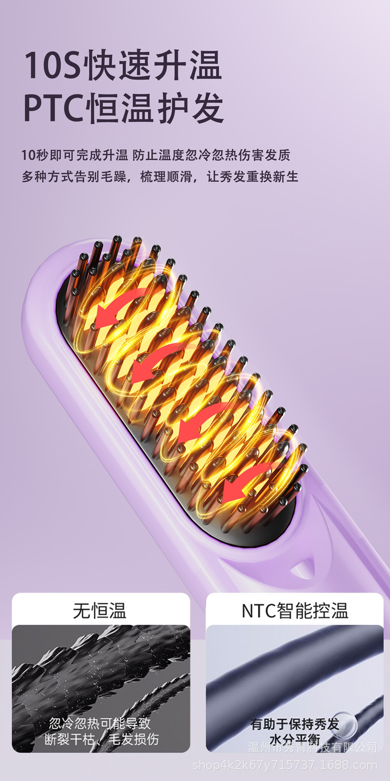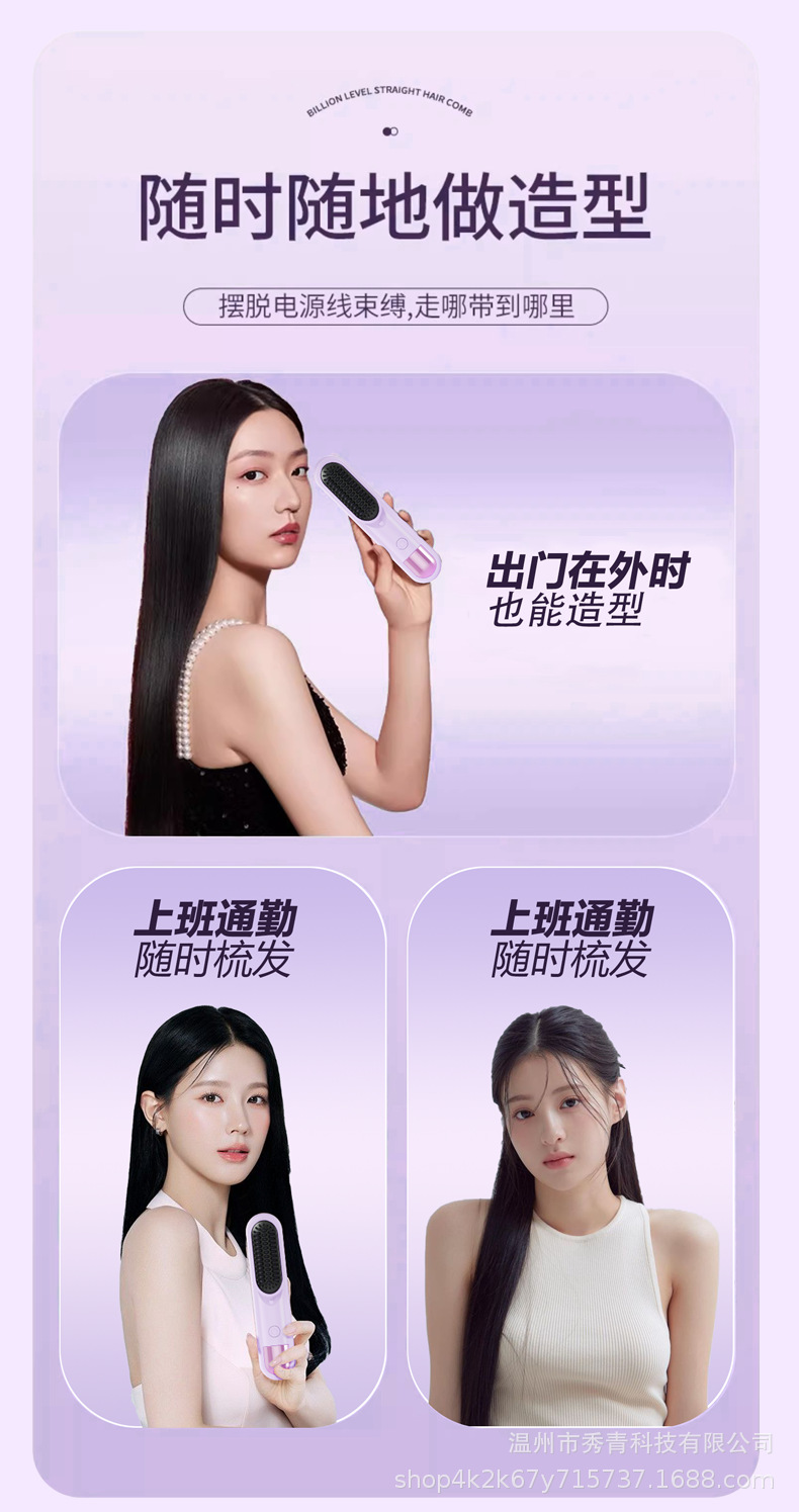가정용 통근용 새로운 음이온 무선 헤어 스트레이트닝 빗, 직선 및 곱슬머리 겸용 컬링 아이언, 화상 방지 및 손상 방지, 충전식 모델스토어 가기