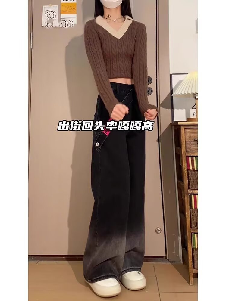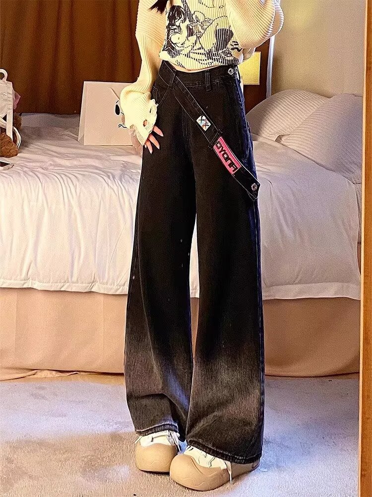 플러스 사이즈 사이드 지퍼 그라디언트 청바지 여성 여름 새로운 미국 스타일 높은 허리 스트레이트 와이드 다리 통통녀 느슨한 바지스토어 가기