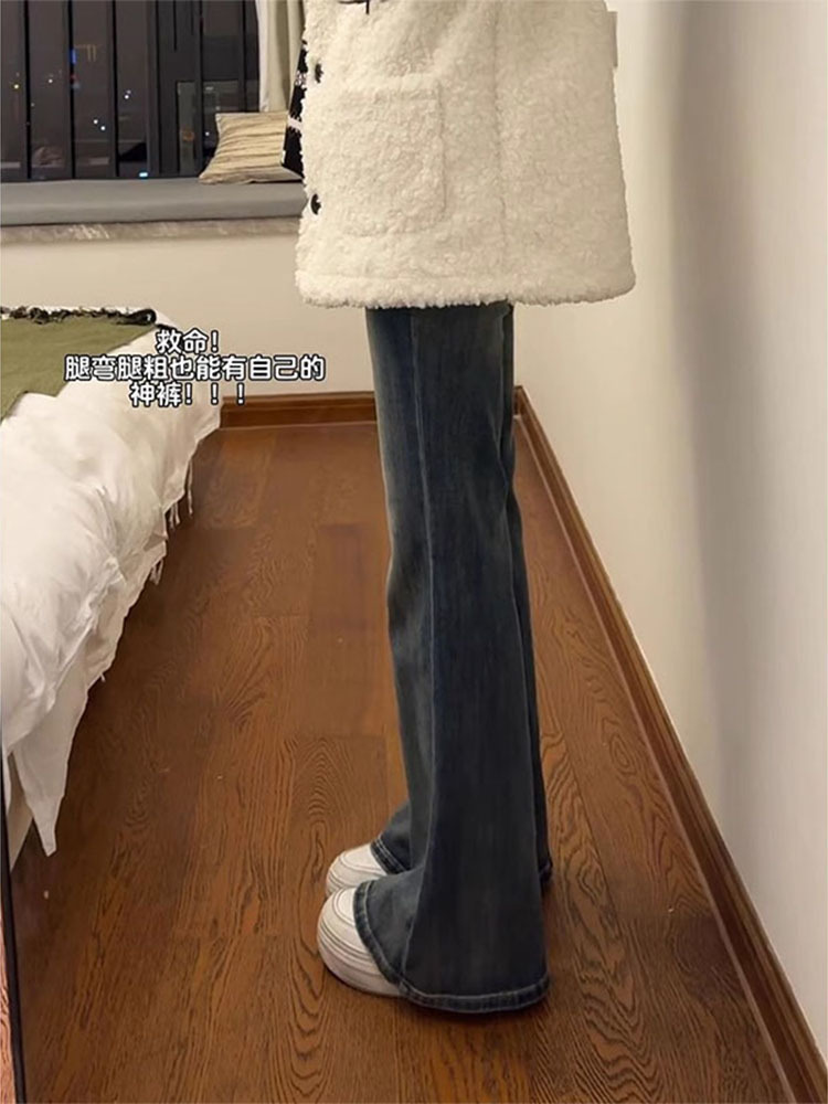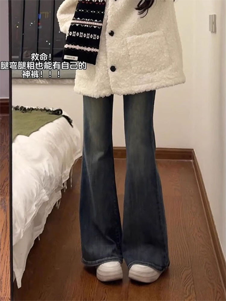 배 모양의 피규어 빈티지 블루 마이크로 라 청바지 여성의 봄 새로운 도착 플러스 사이즈 통통녀 높은 허리 슬리밍 스트레치 플레어 팬츠스토어 가기
