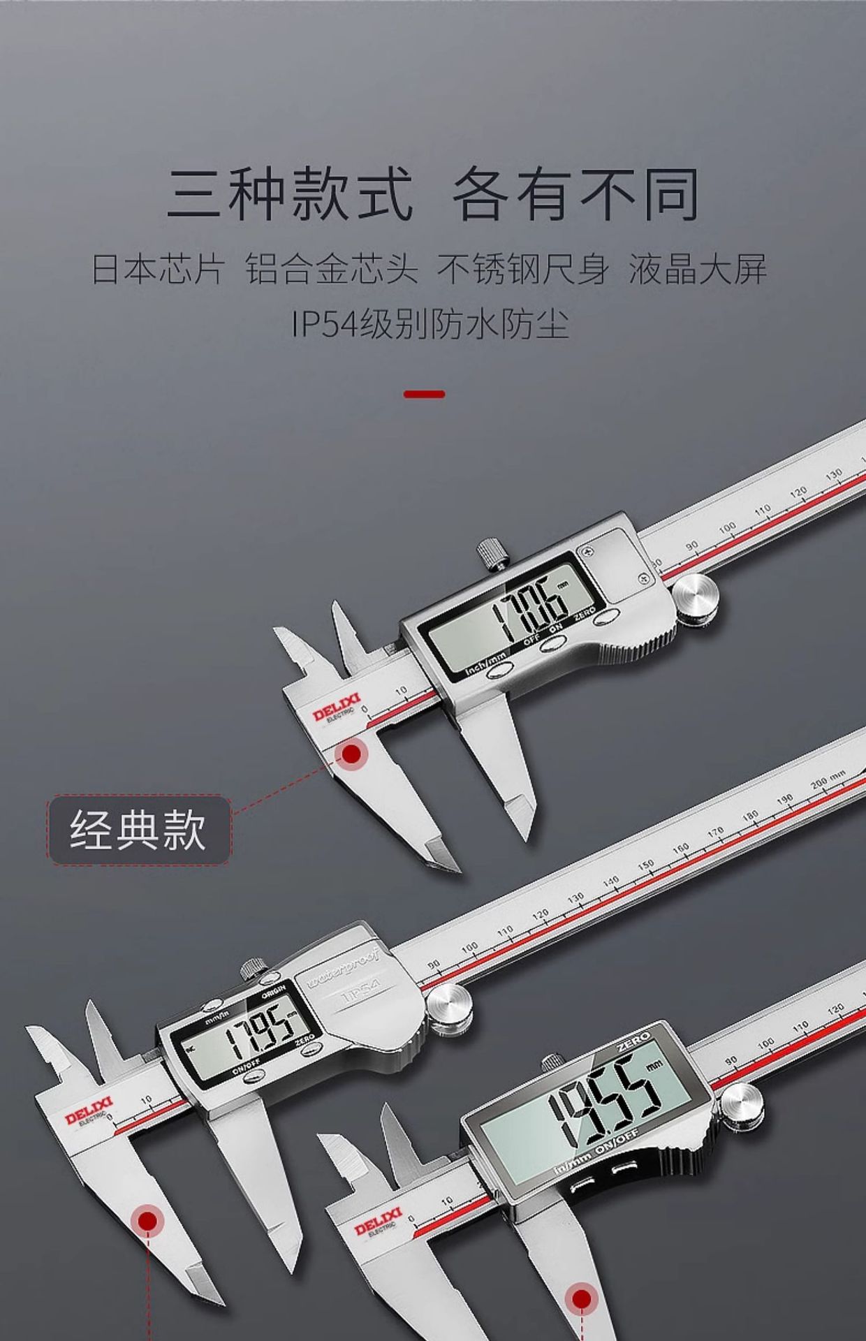 Delixi 전자 버니어 캘리퍼스 고정밀 디지털 디스플레이 산업용 등급 가정용 소형 문화 장난감 고 깊이 오일 캘리퍼스
