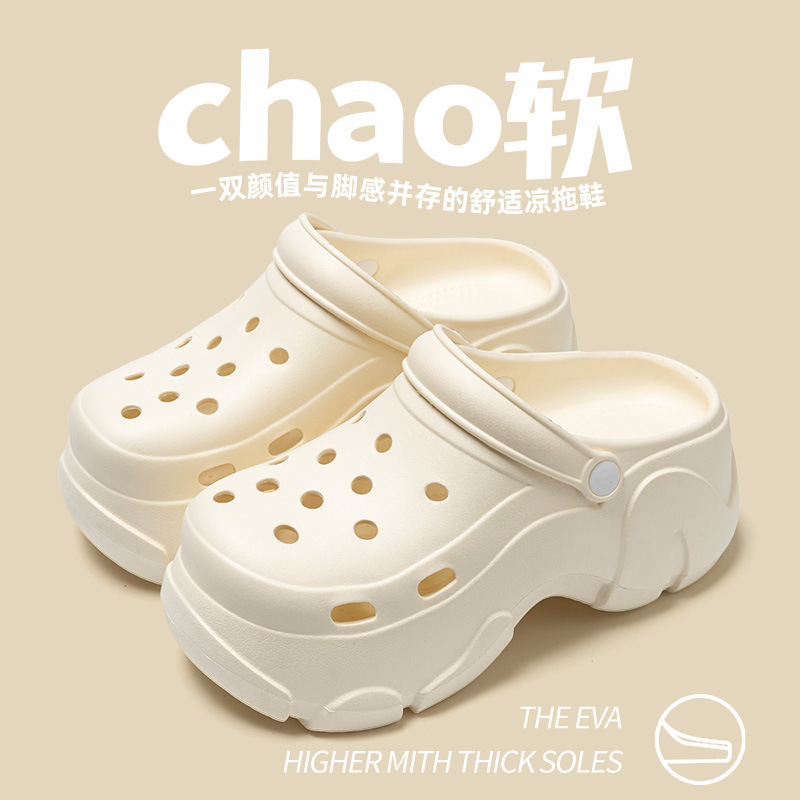 냄새 나는 발을 위한 키높이 슈퍼 스텝 샌들, 비치 스타일, 패셔너블, 미끄럼 방지, 구멍 바닥, 두껍고 통기성이 좋은 여성용 여름 샌들스토어 가기