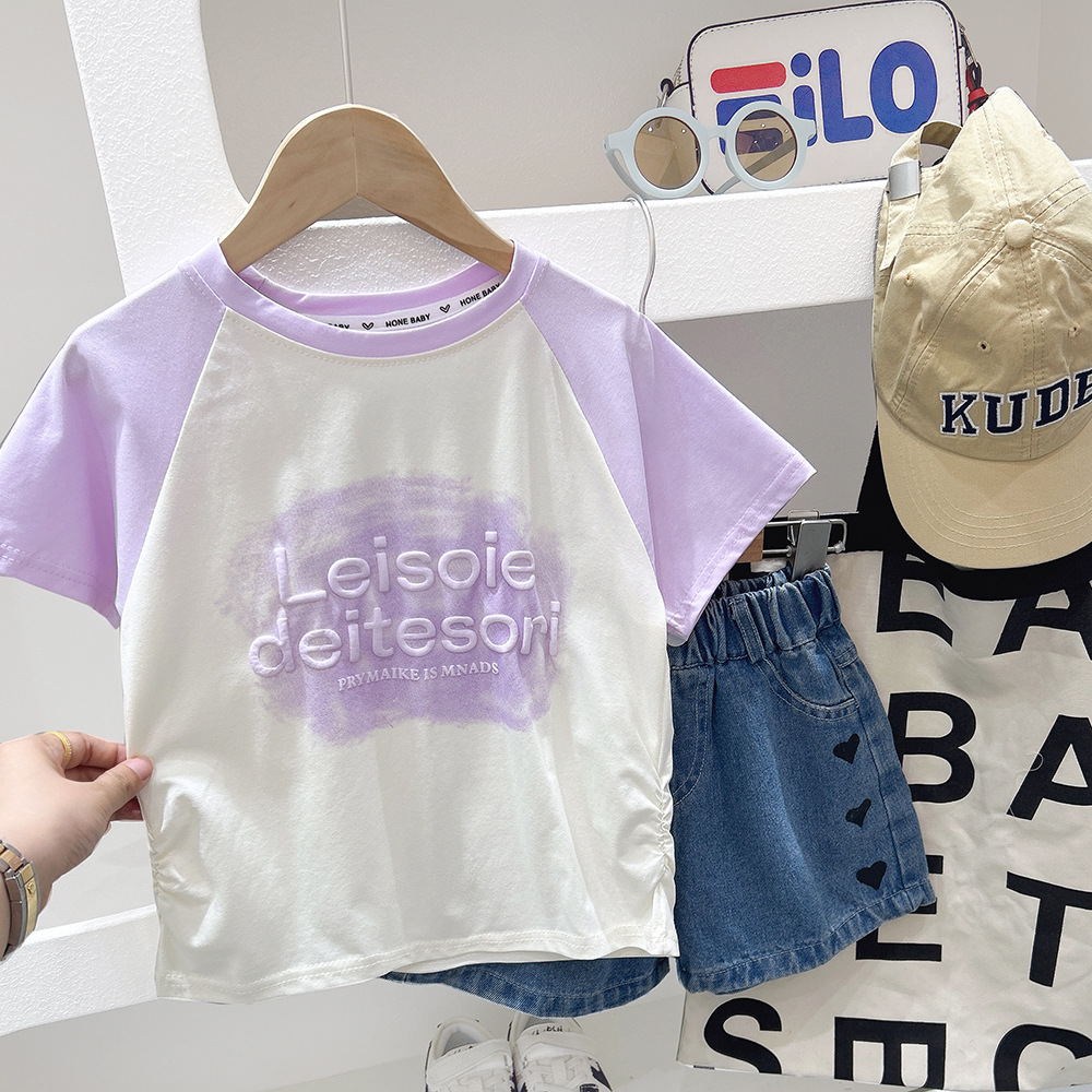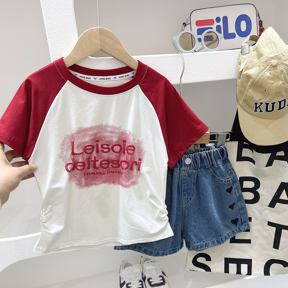 여자 반소매 티셔츠 여름 2025 새로운 아기 서양식 옷 아동복 반소매 최고 아동베이스 셔츠 트렌디