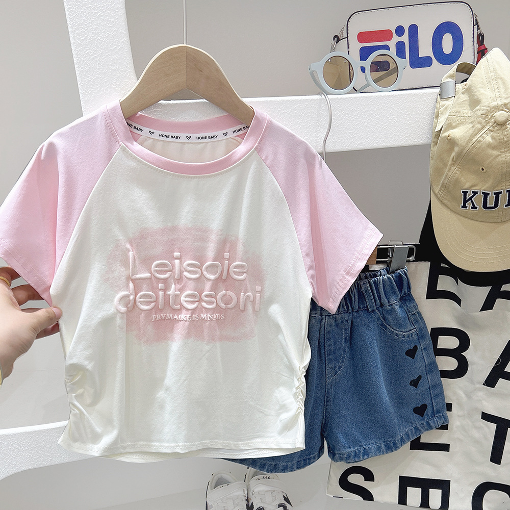여자 반소매 티셔츠 여름 2025 새로운 아기 서양식 옷 아동복 반소매 최고 아동베이스 셔츠 트렌디스토어 가기