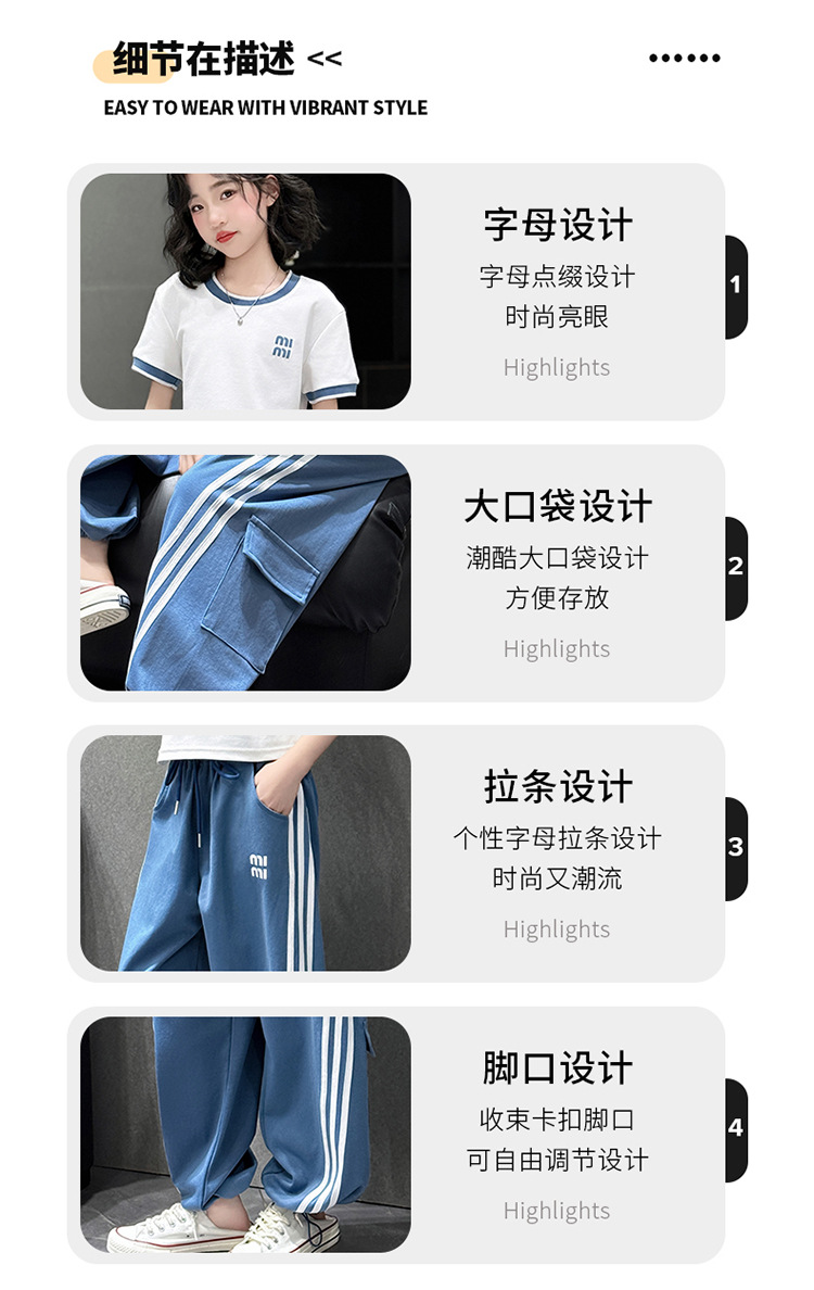 여자 스포츠웨어 세트 여름 2025 새로운 cuhk 어린이 대학 스타일의 편지 티셔츠는 넓은 다리 바지를 캐주얼스토어 가기