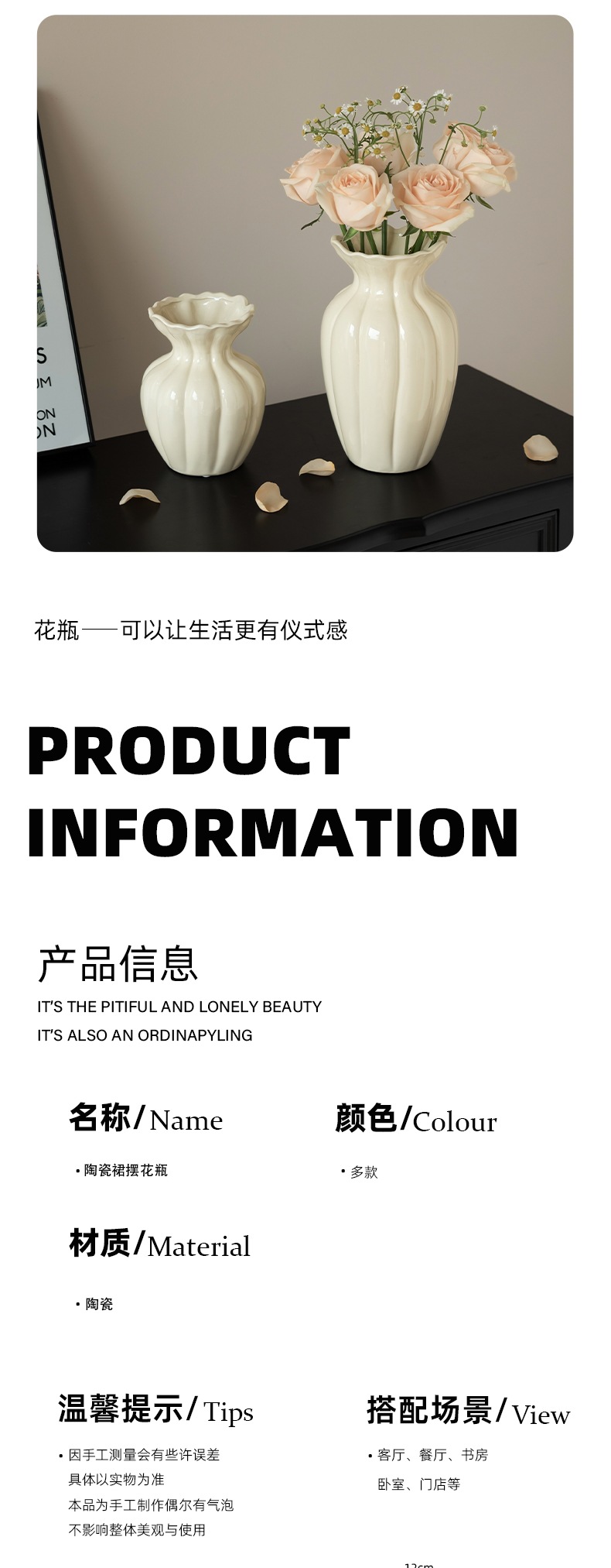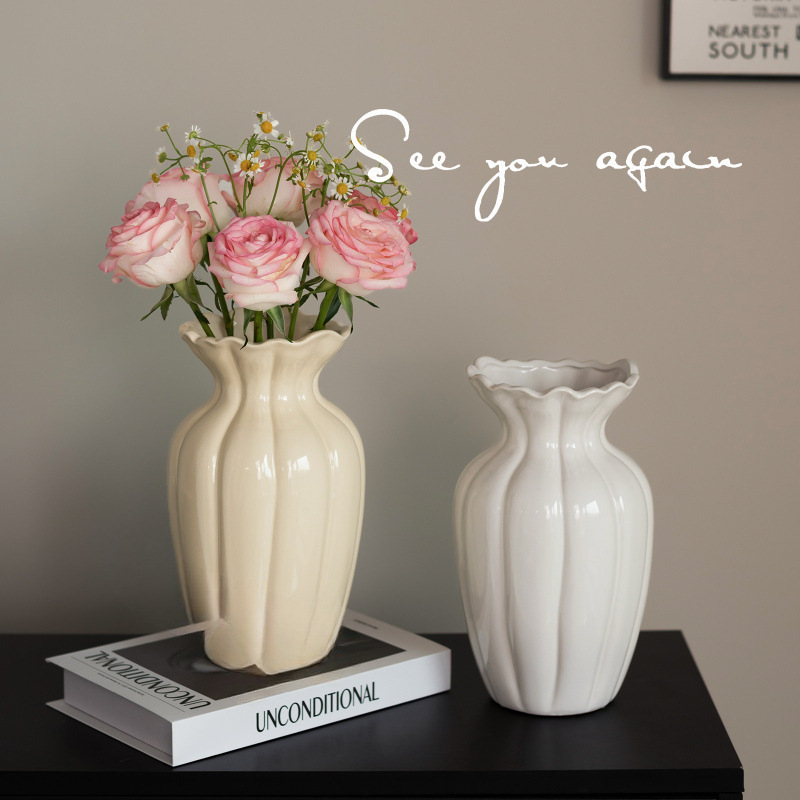 세라믹 꽃병 느낌 복고풍 흰색 프랑스 미국 장식품 거실 수경 꽃꽂이 꽃 크림 스타일 장식 무료 배송