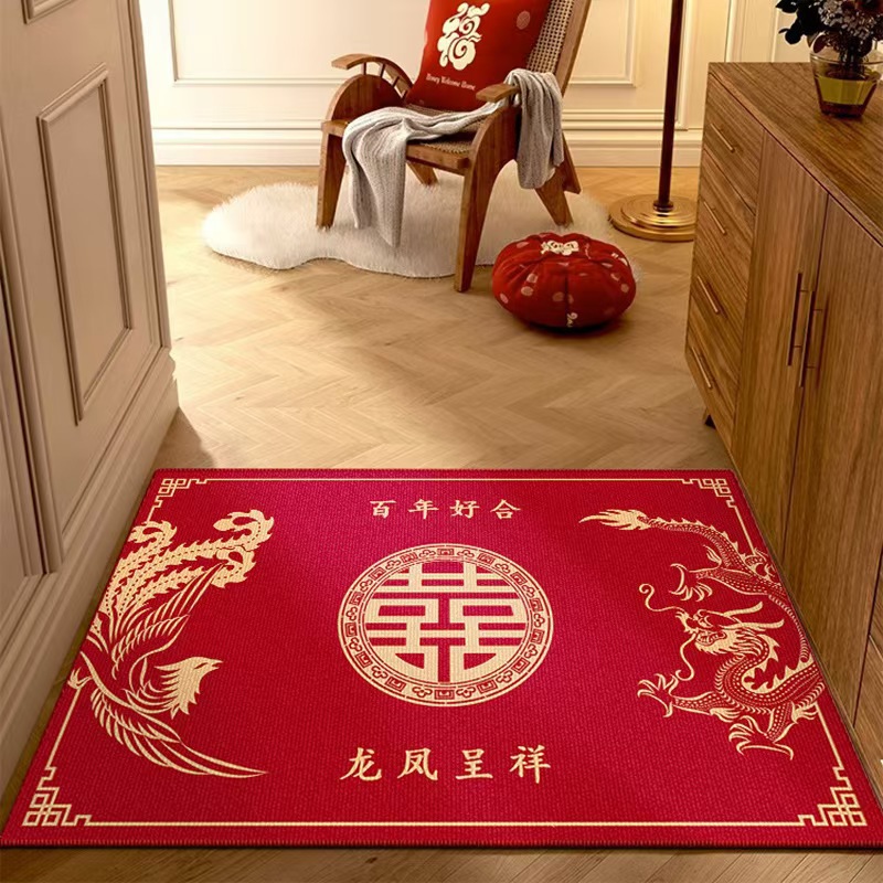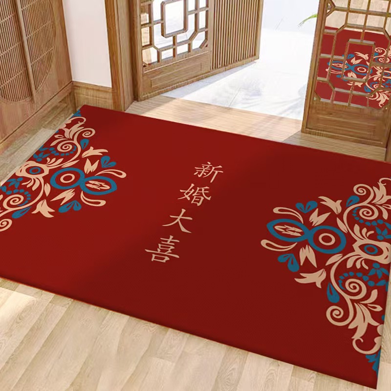 결혼식 출입문 빨간색 도어매트 거실 침실 현관문 크리스탈 벨벳 발매트 미끄럼 방지 내구성 관리 용이 카펫