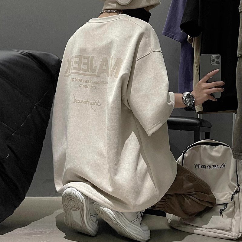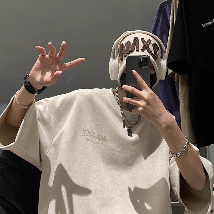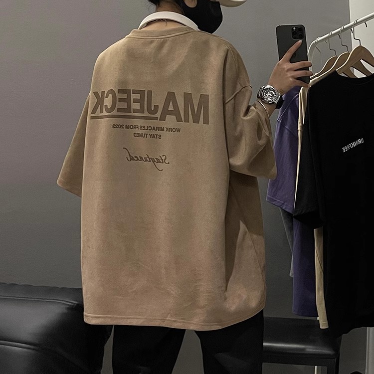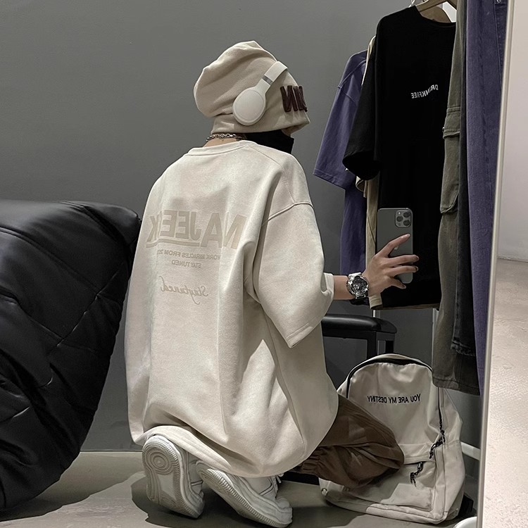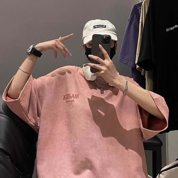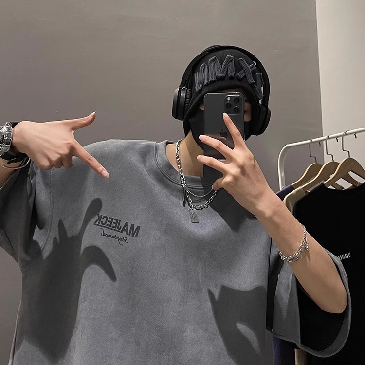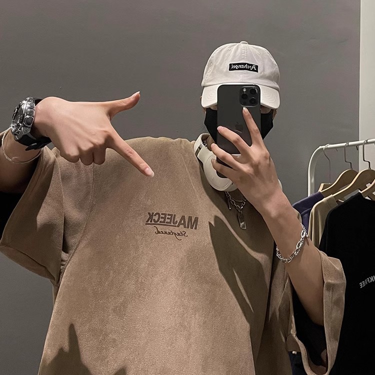 남성용 티셔츠 쇼트 슬리브 여름 헤비 320g 아메리칸 스타일 레트로 커플의 패션 브랜드 오리지널 스웨이드 레트로 탑스토어 가기
