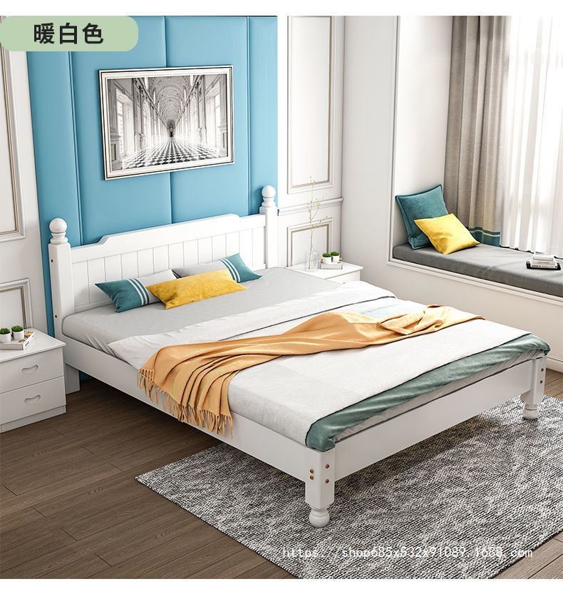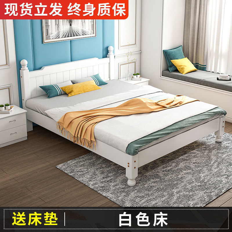 단단한 나무 침대 현대 간단한 1.8 m 더블 침대 흰색 1.5 m 싱글 침대 1 m 경제적 인 가정용 간단한 침대