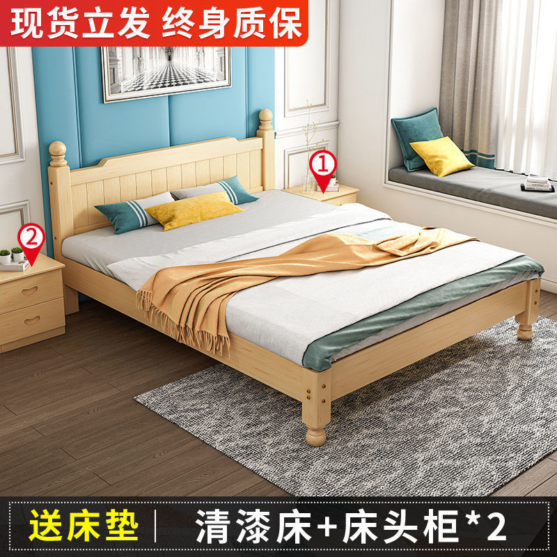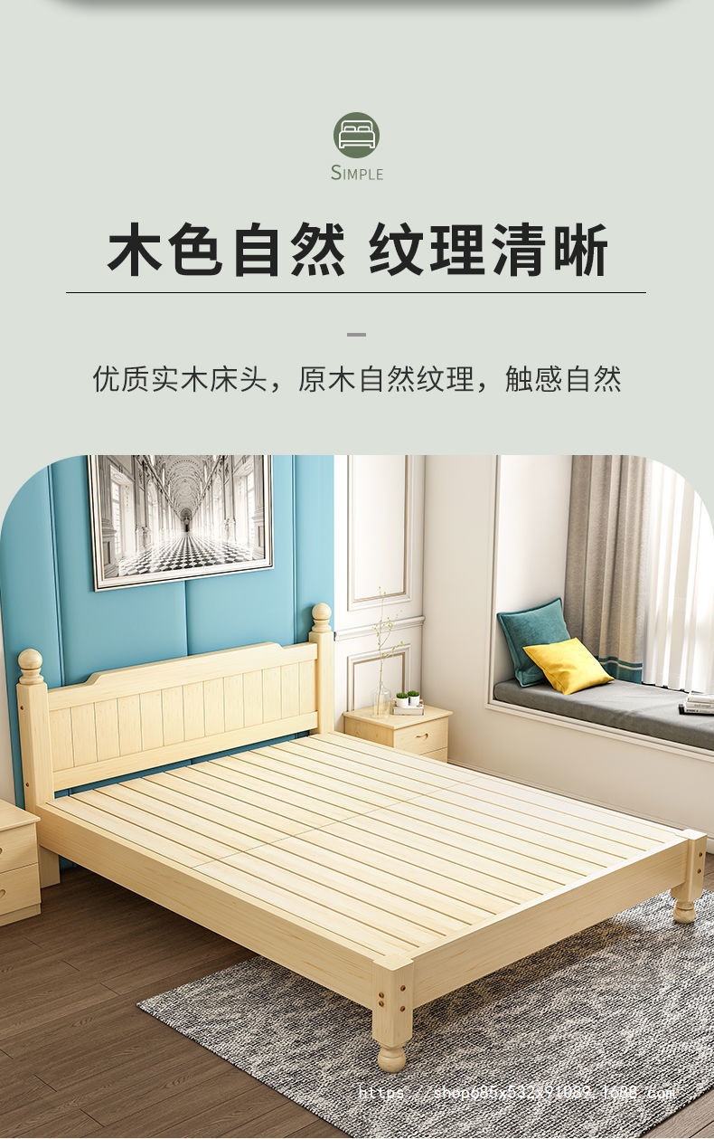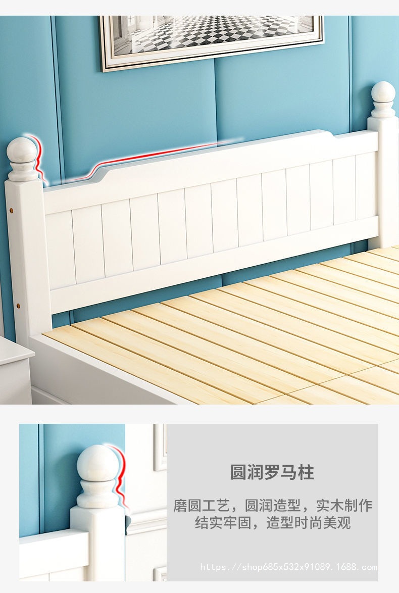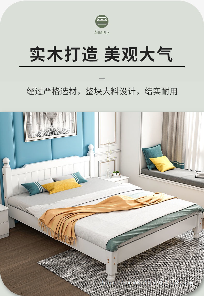 단단한 나무 침대 현대 간단한 1.8 m 더블 침대 흰색 1.5 m 싱글 침대 1 m 경제적 인 가정용 간단한 침대스토어 가기