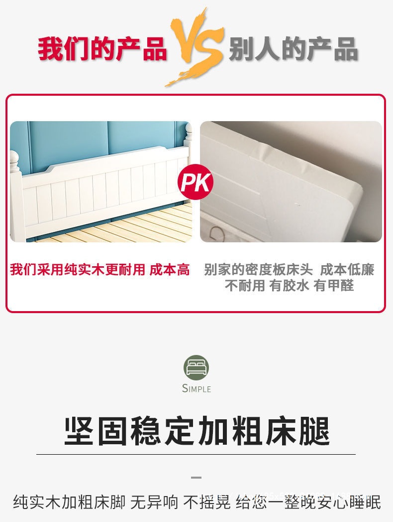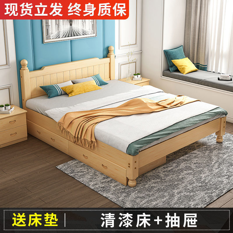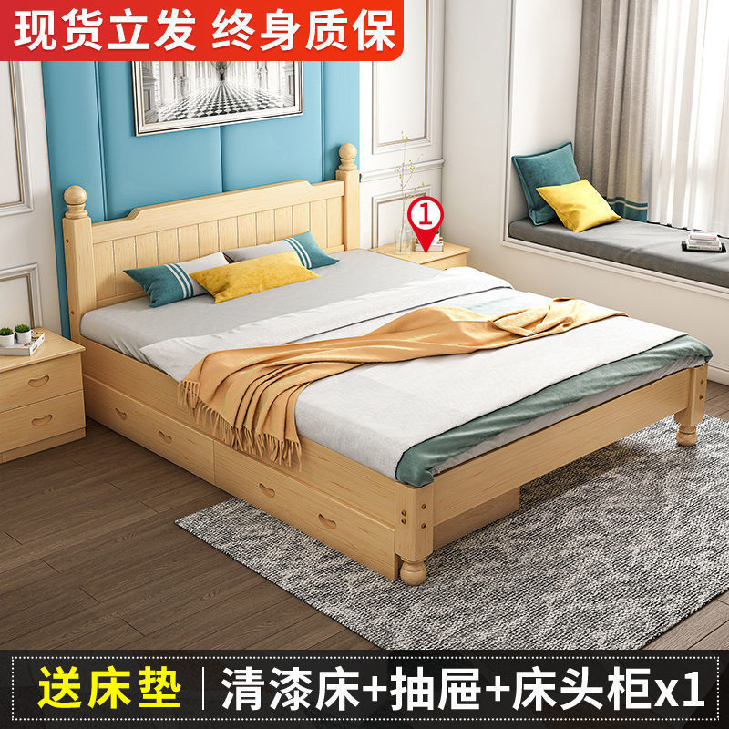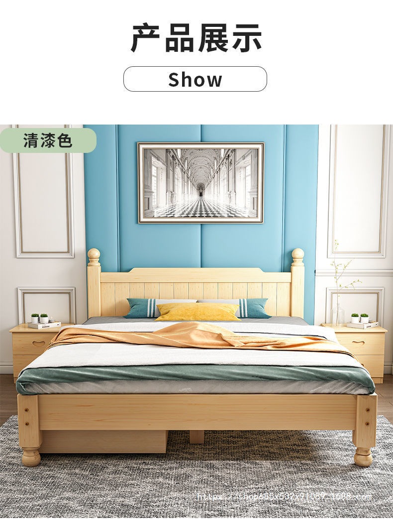 단단한 나무 침대 현대 간단한 1.8 m 더블 침대 흰색 1.5 m 싱글 침대 1 m 경제적 인 가정용 간단한 침대스토어 가기