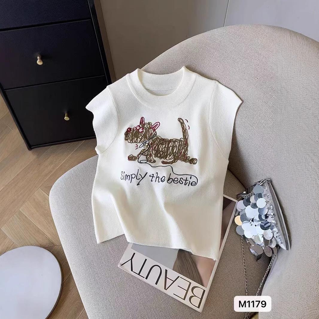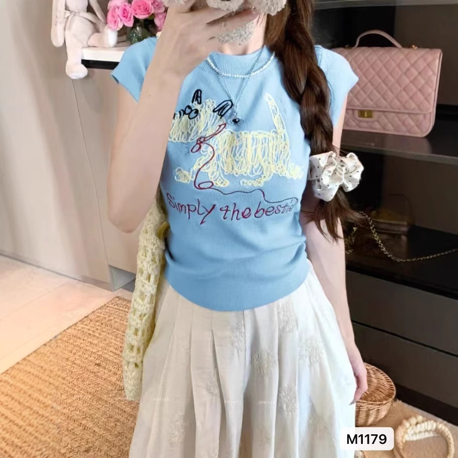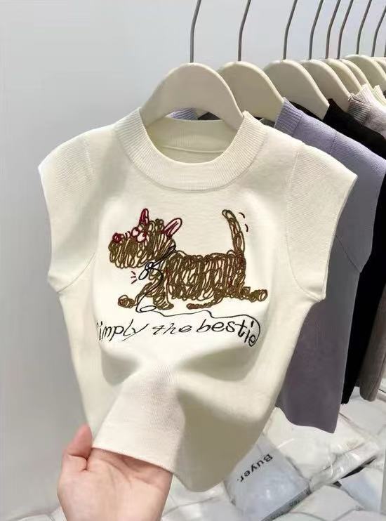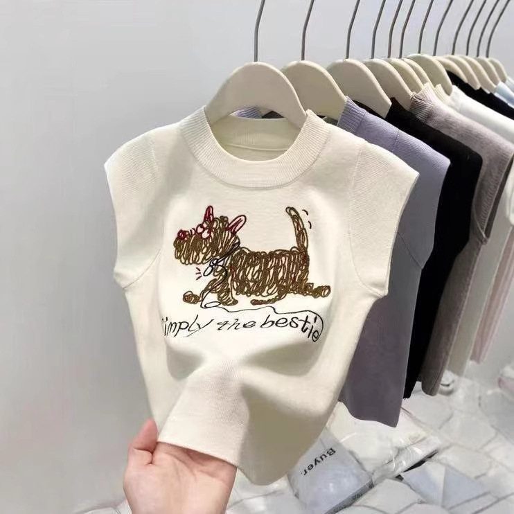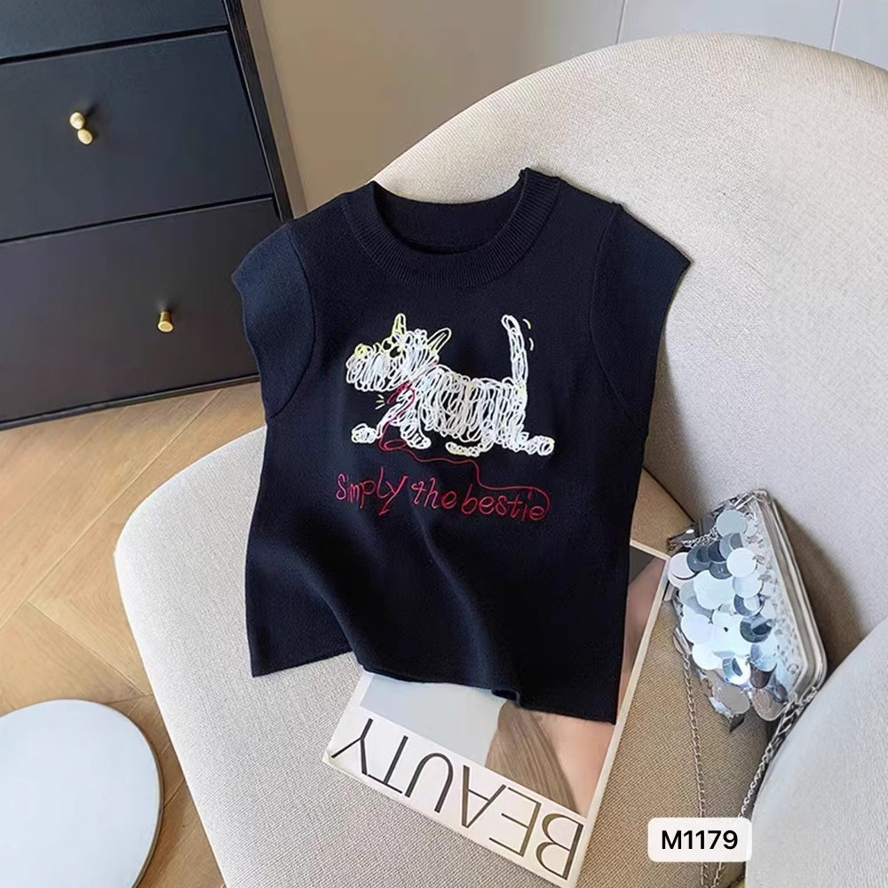 여성을위한 세련되고 아름다운 풀오버 라운드 넥 강아지 크로 셰 뜨개질 반팔 니트 티셔츠 2025 여름 신작 탑 니트스토어 가기