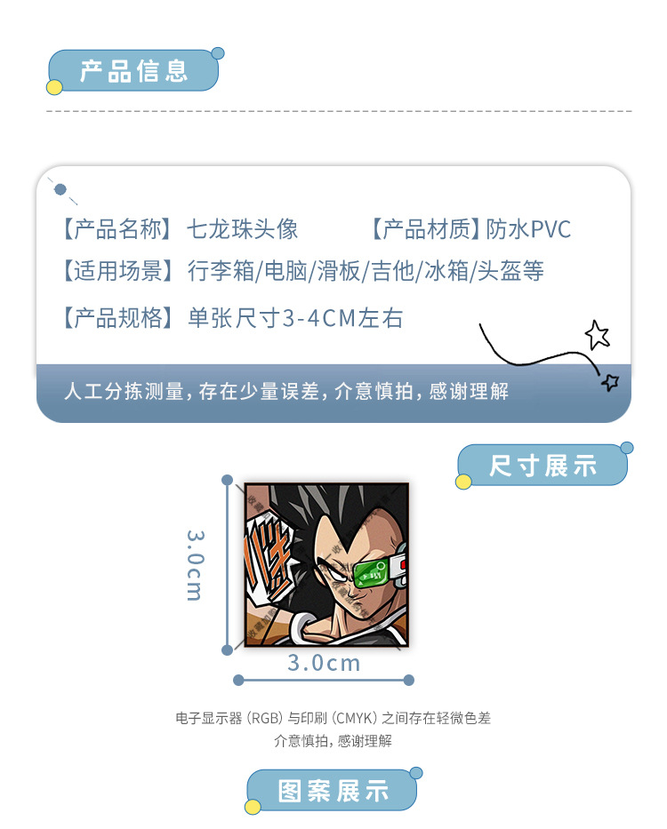 클래식 애니메이션 드래곤 볼 아바타 소재 스티커 ins 자체 접착 iPad 전화 케이스 벽 방수 스티커 DIY스토어 가기