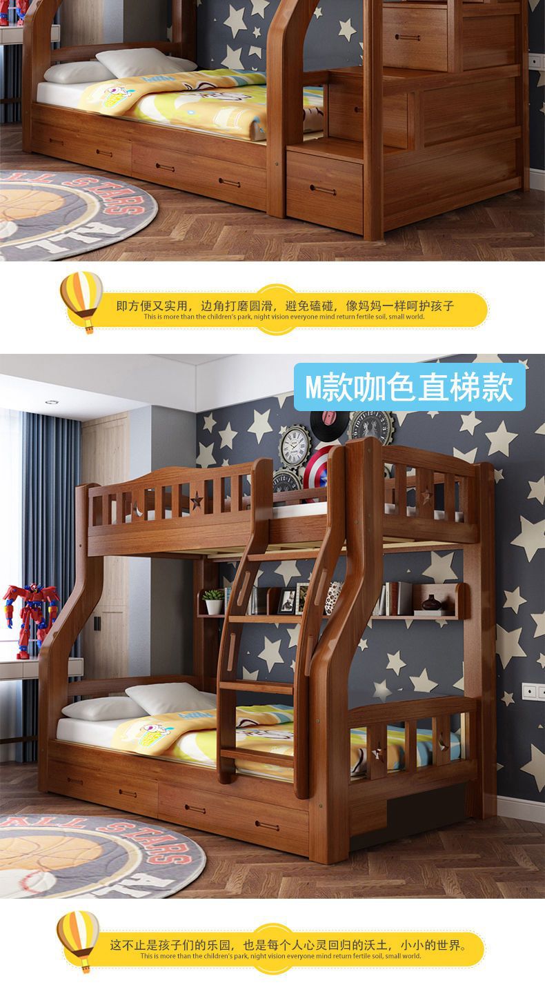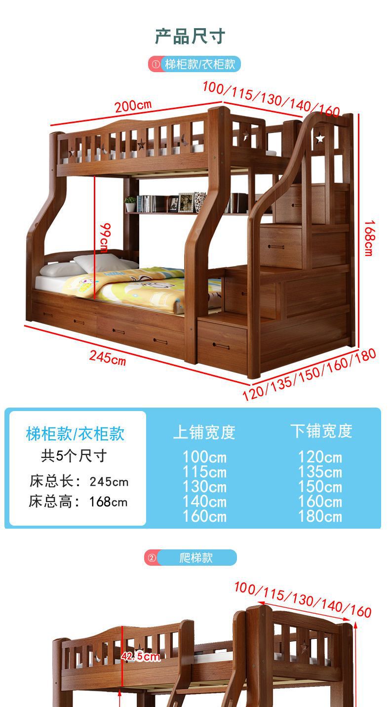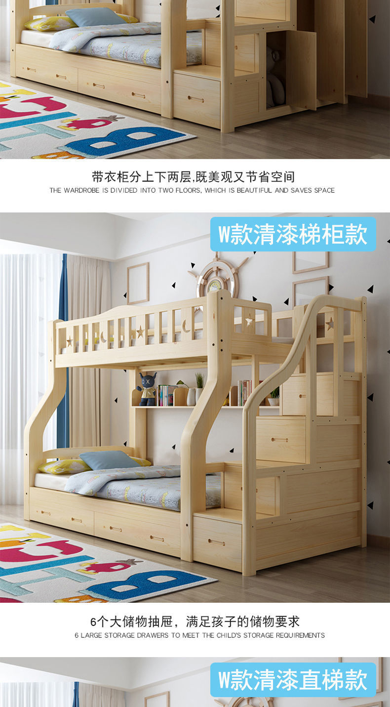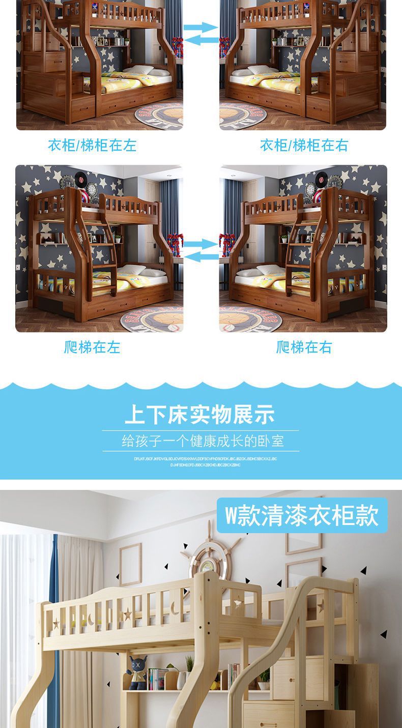 Xizhi 두꺼운 원목 이층 침대, 높고 낮은 이층 침대, 성인용 이층 침대, 2층 옷장스토어 가기