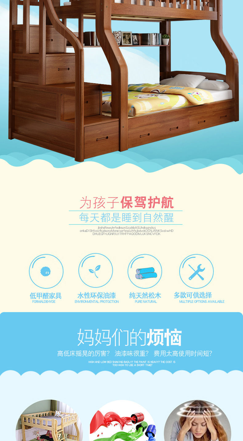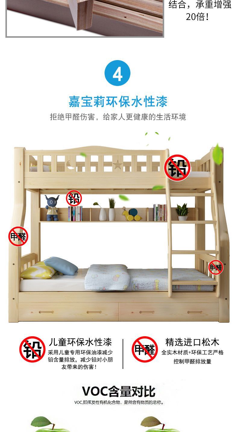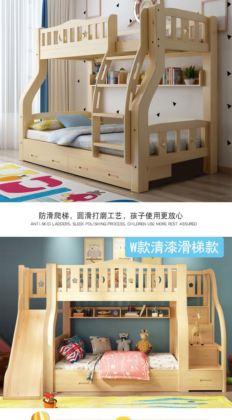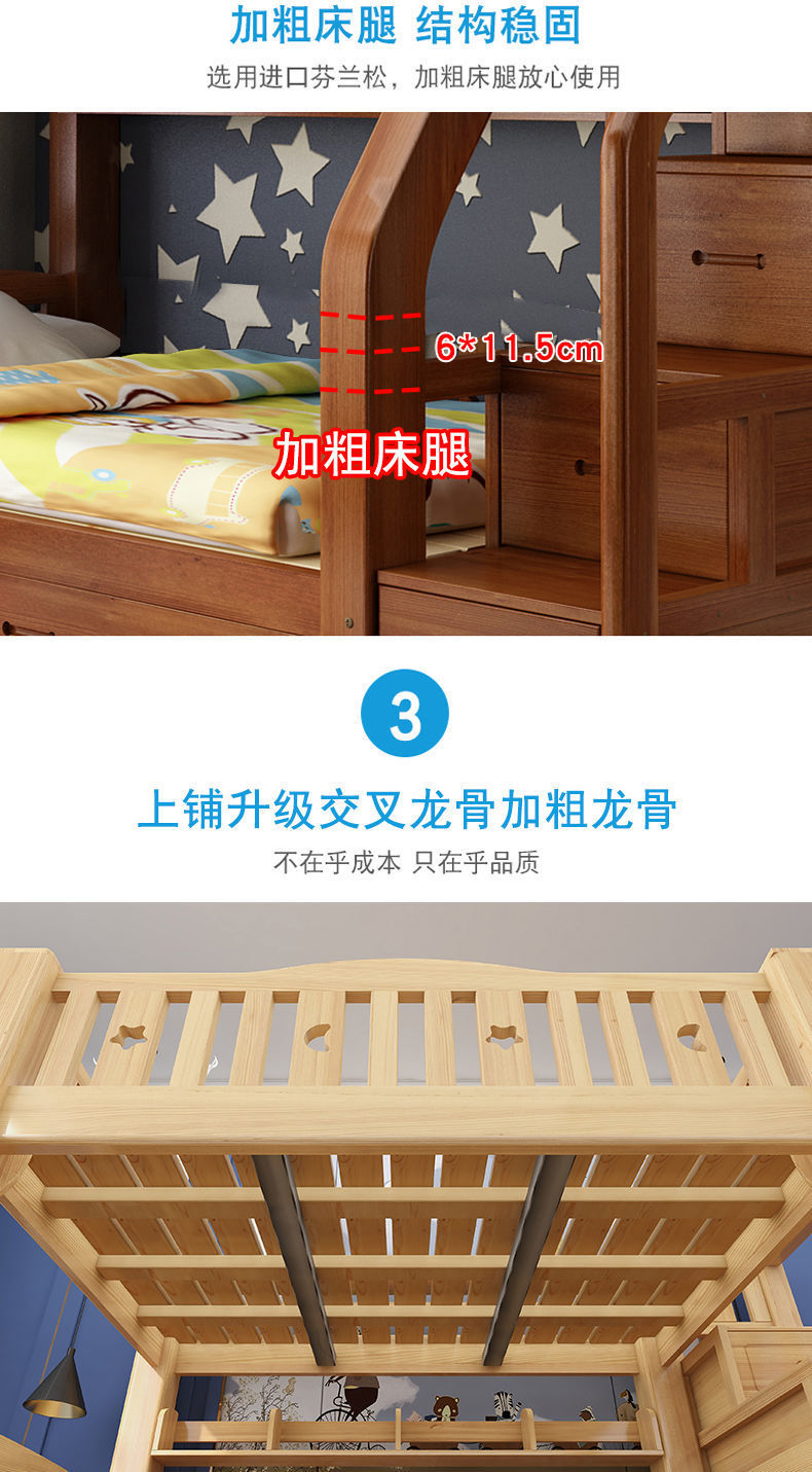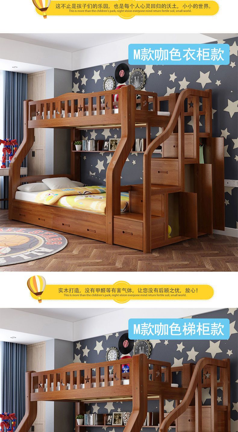Xizhi 두꺼운 원목 이층 침대, 높고 낮은 이층 침대, 성인용 이층 침대, 2층 옷장스토어 가기