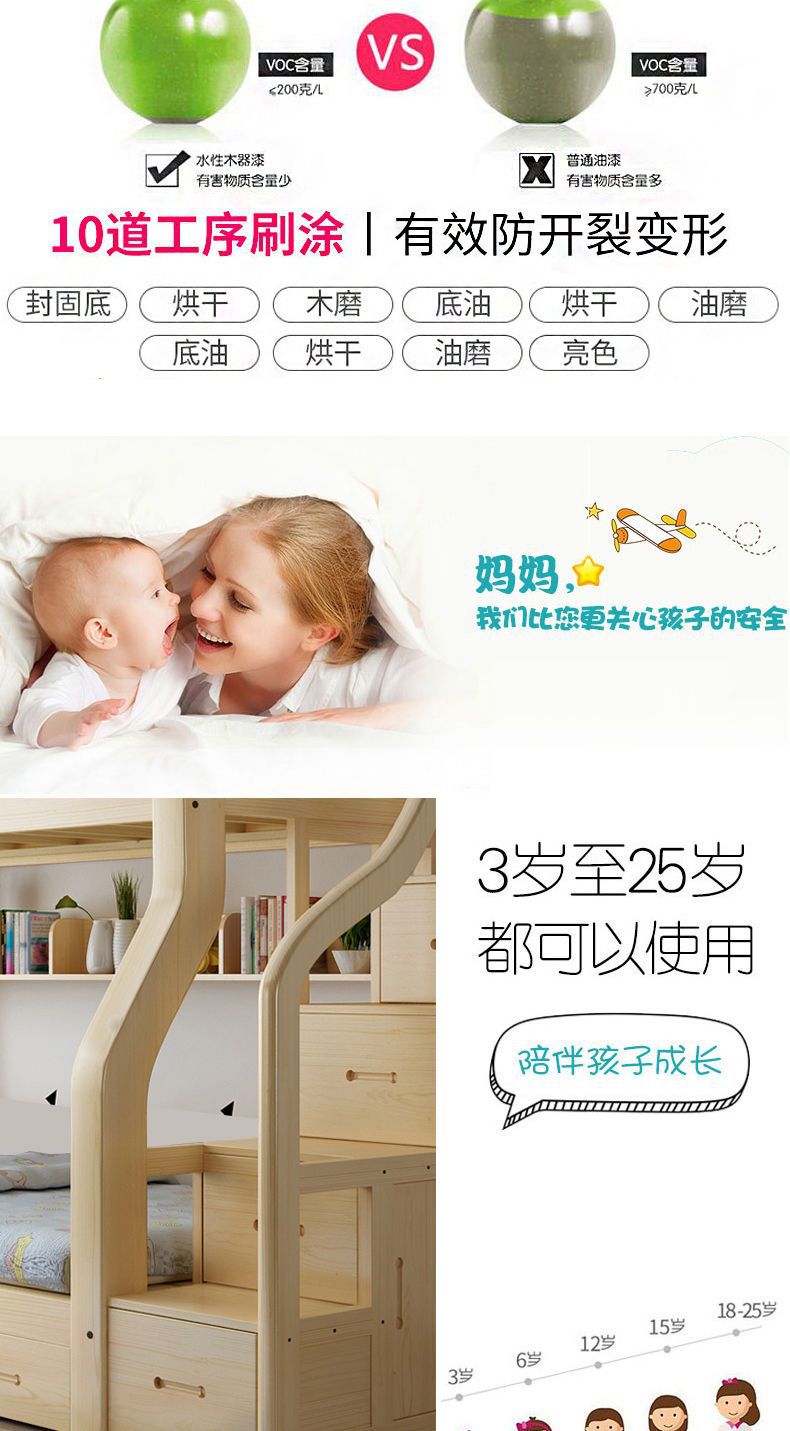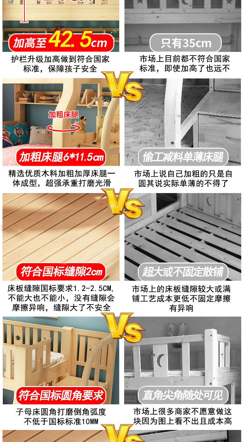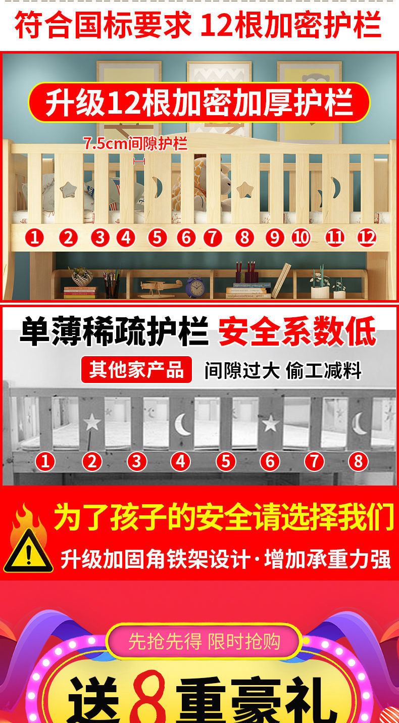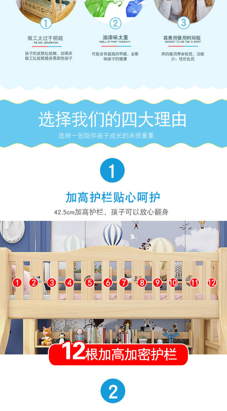 Xizhi 두꺼운 원목 이층 침대, 높고 낮은 이층 침대, 성인용 이층 침대, 2층 옷장스토어 가기