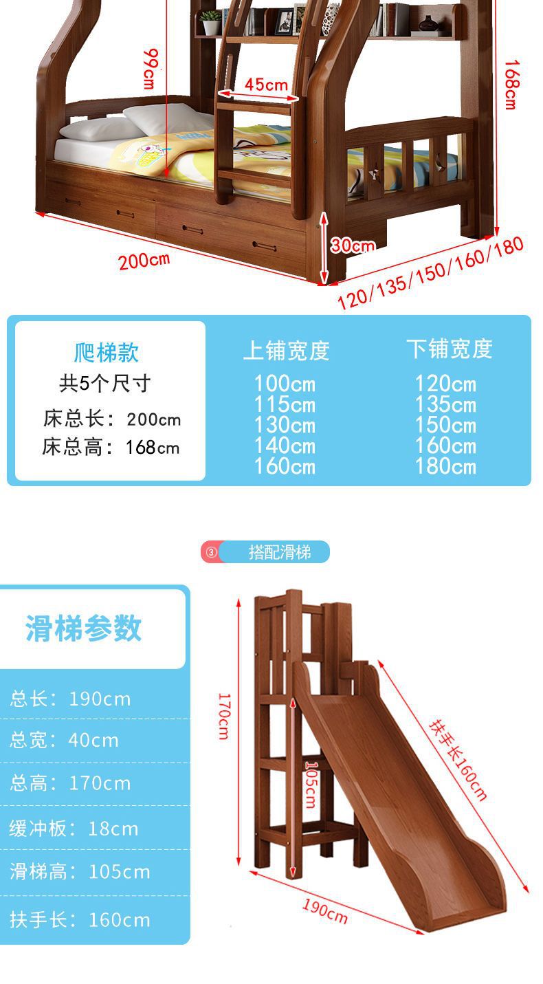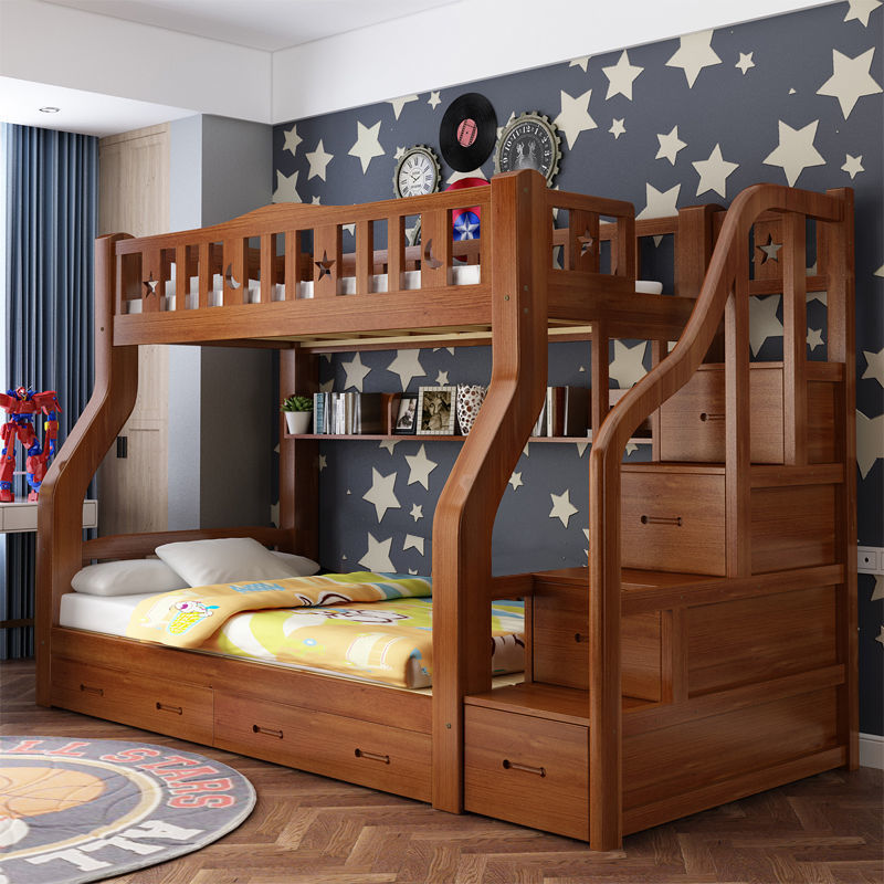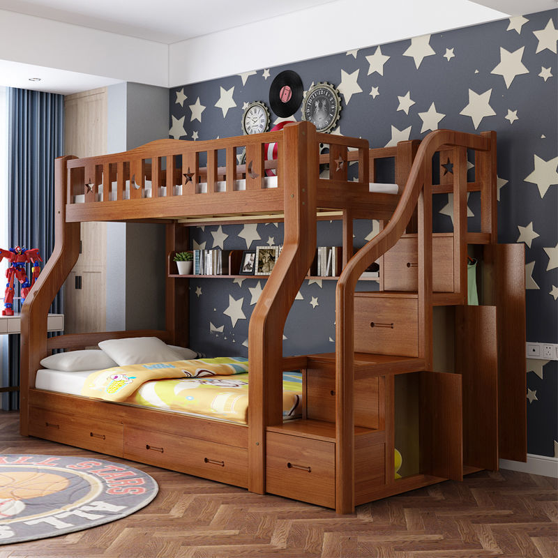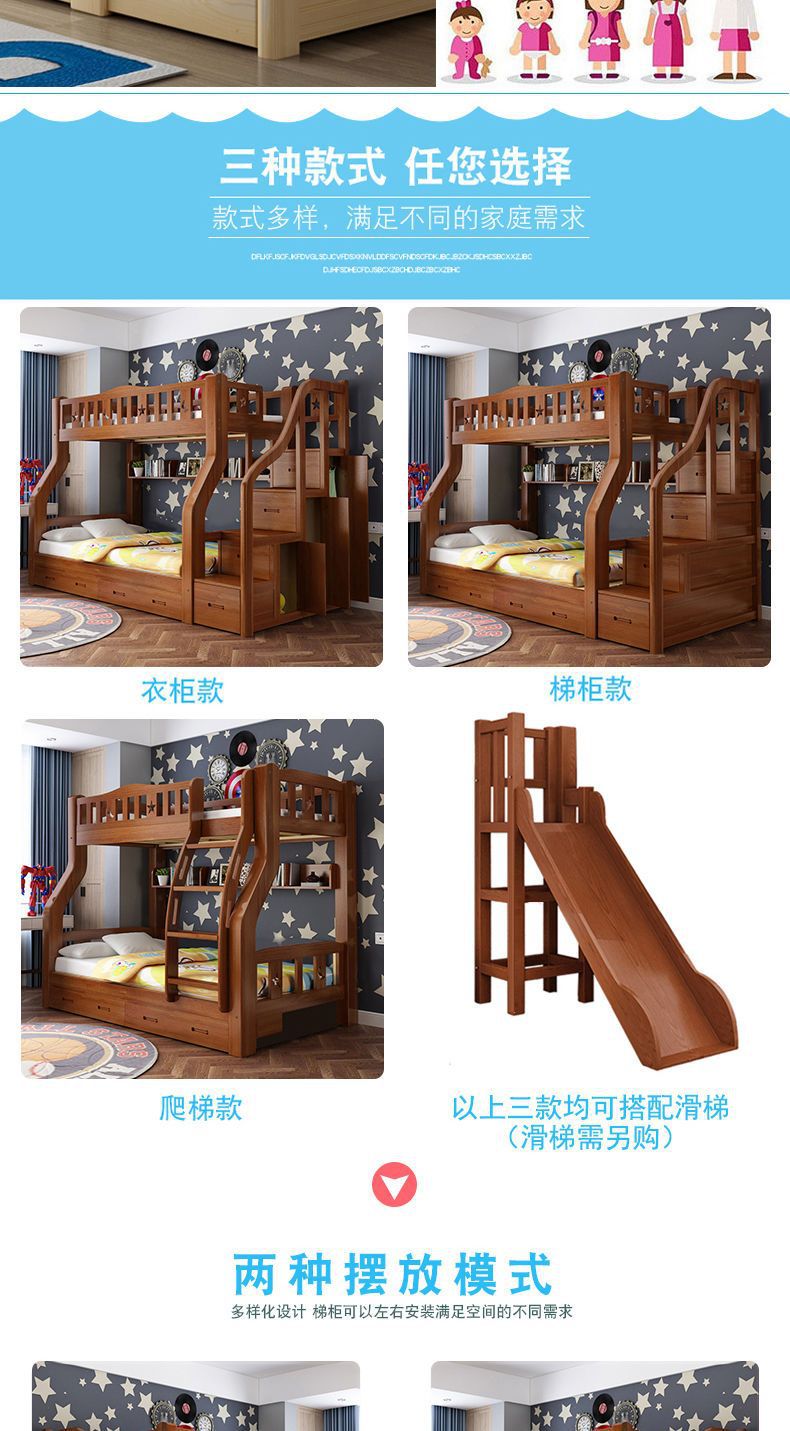 Xizhi 두꺼운 원목 이층 침대, 높고 낮은 이층 침대, 성인용 이층 침대, 2층 옷장