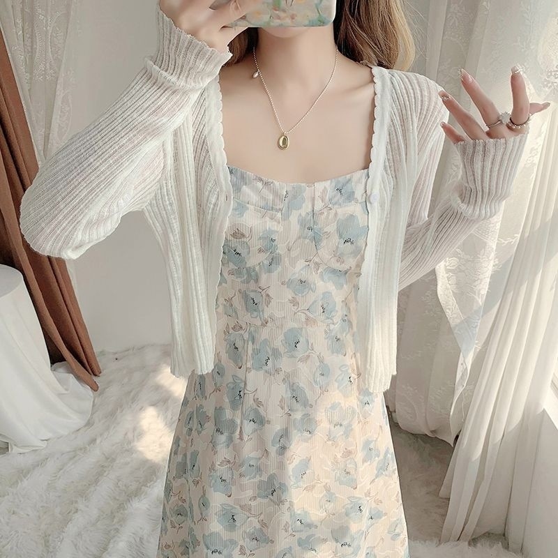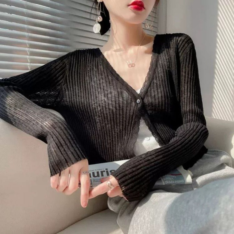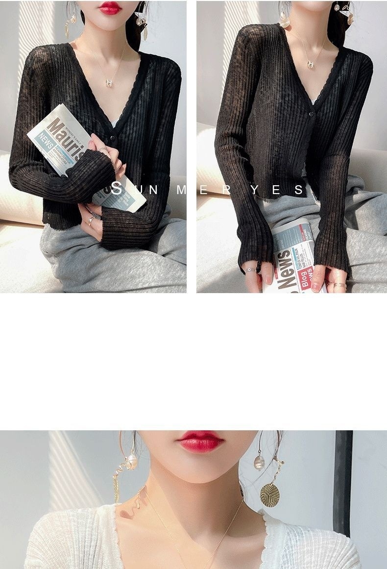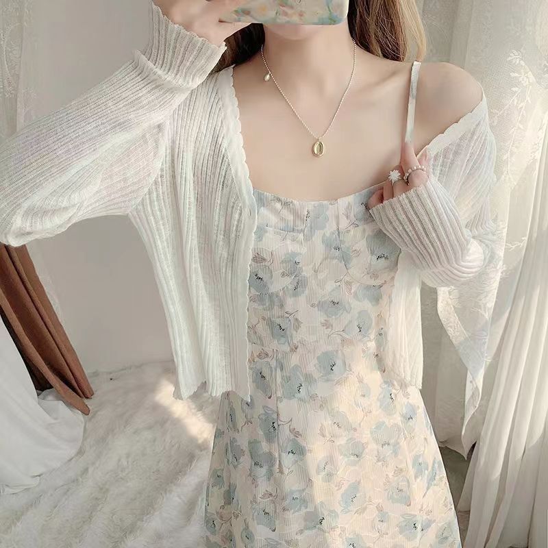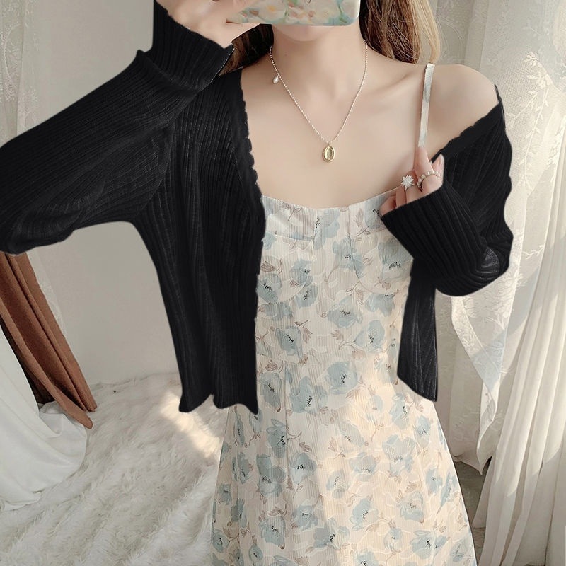 선스크린 카디건 여름 여성의 얇은 스커트, 서스펜더 목도리 블라우스 아이스 실크 니트 에어컨 올 매치 쇼트 재킷