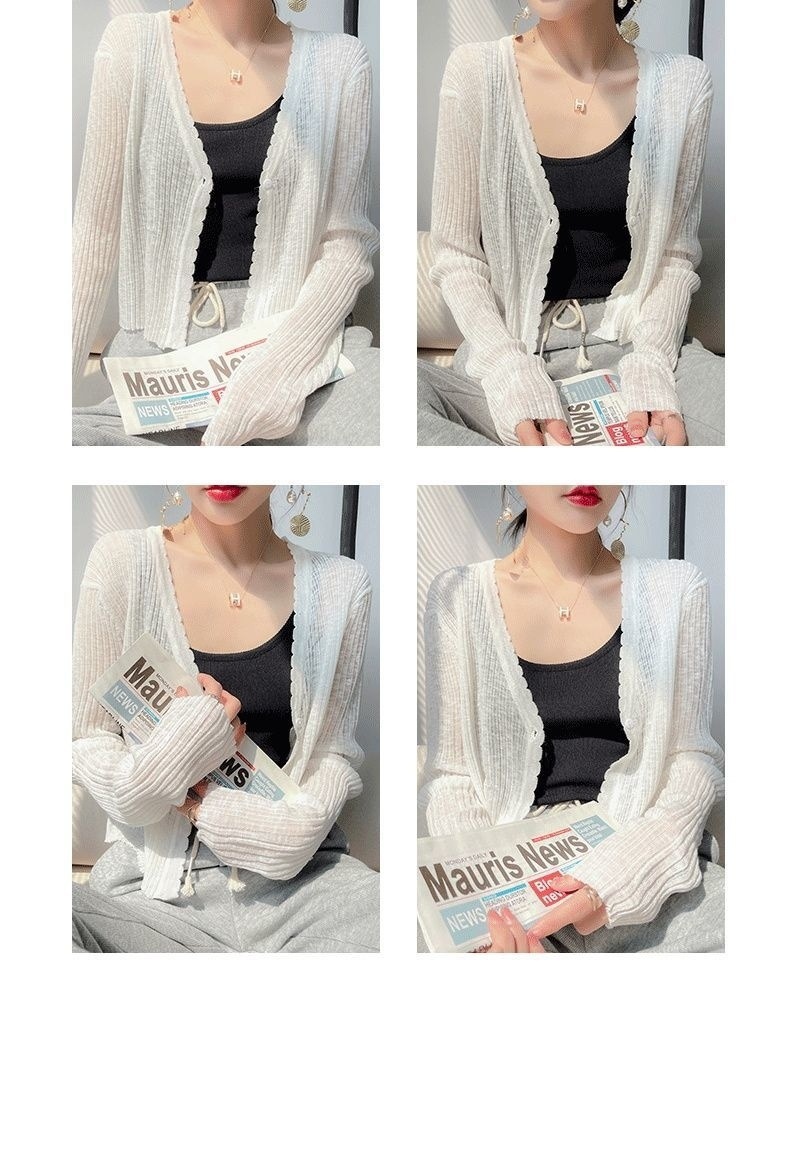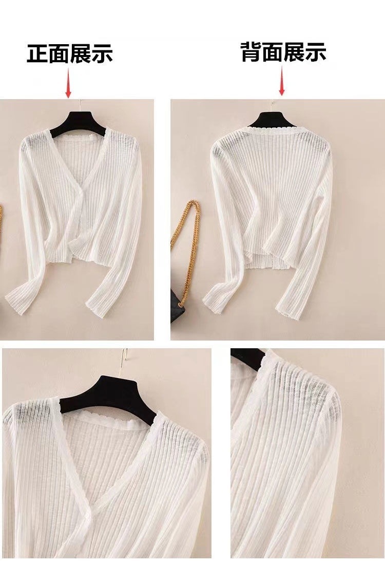 선스크린 카디건 여름 여성의 얇은 스커트, 서스펜더 목도리 블라우스 아이스 실크 니트 에어컨 올 매치 쇼트 재킷스토어 가기