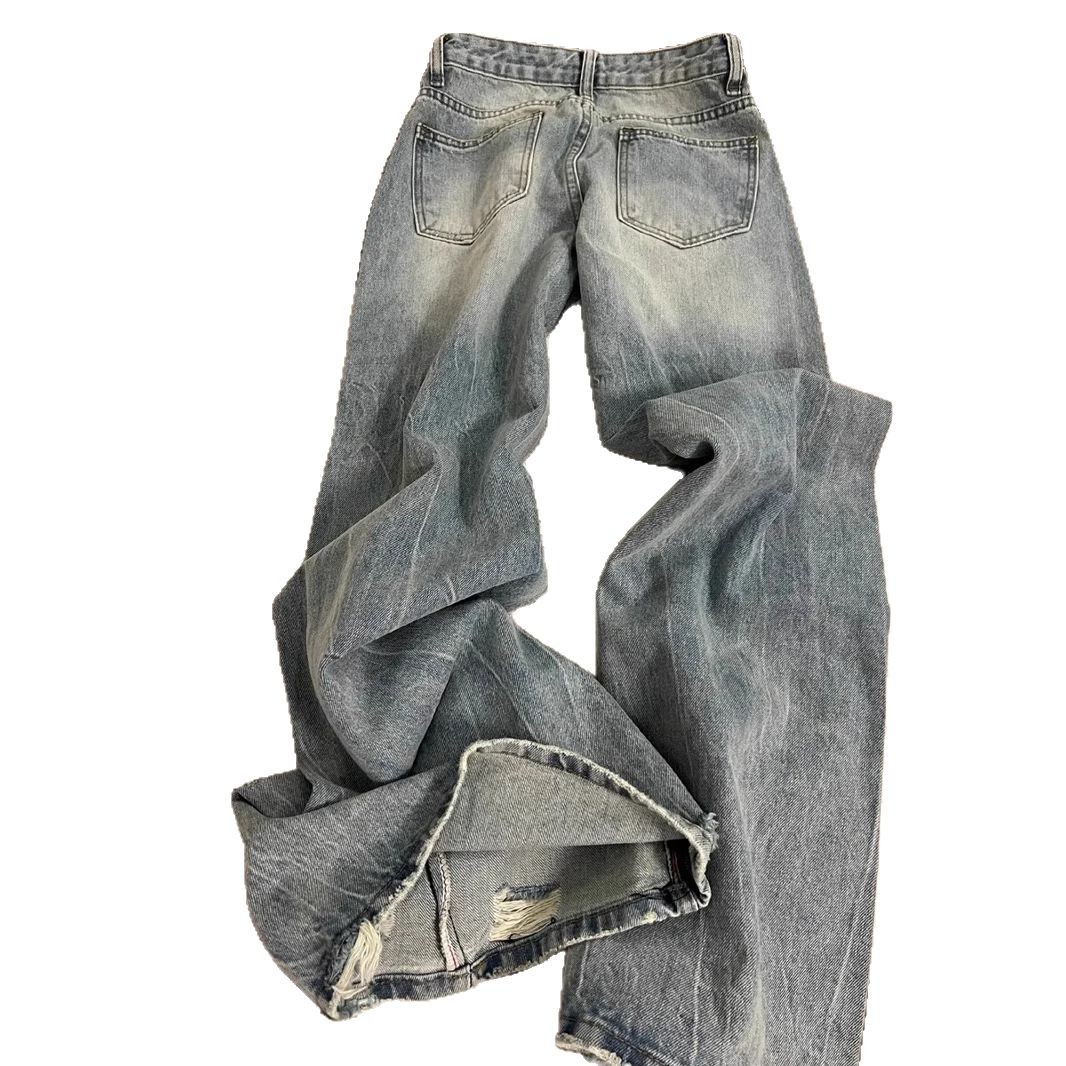 아메리칸 스타일 빈티지 바느질 마체테 넓은 다리 청바지 여성의 작은 느슨한 슬리밍 스트레이트 바지 높은 허리 바지