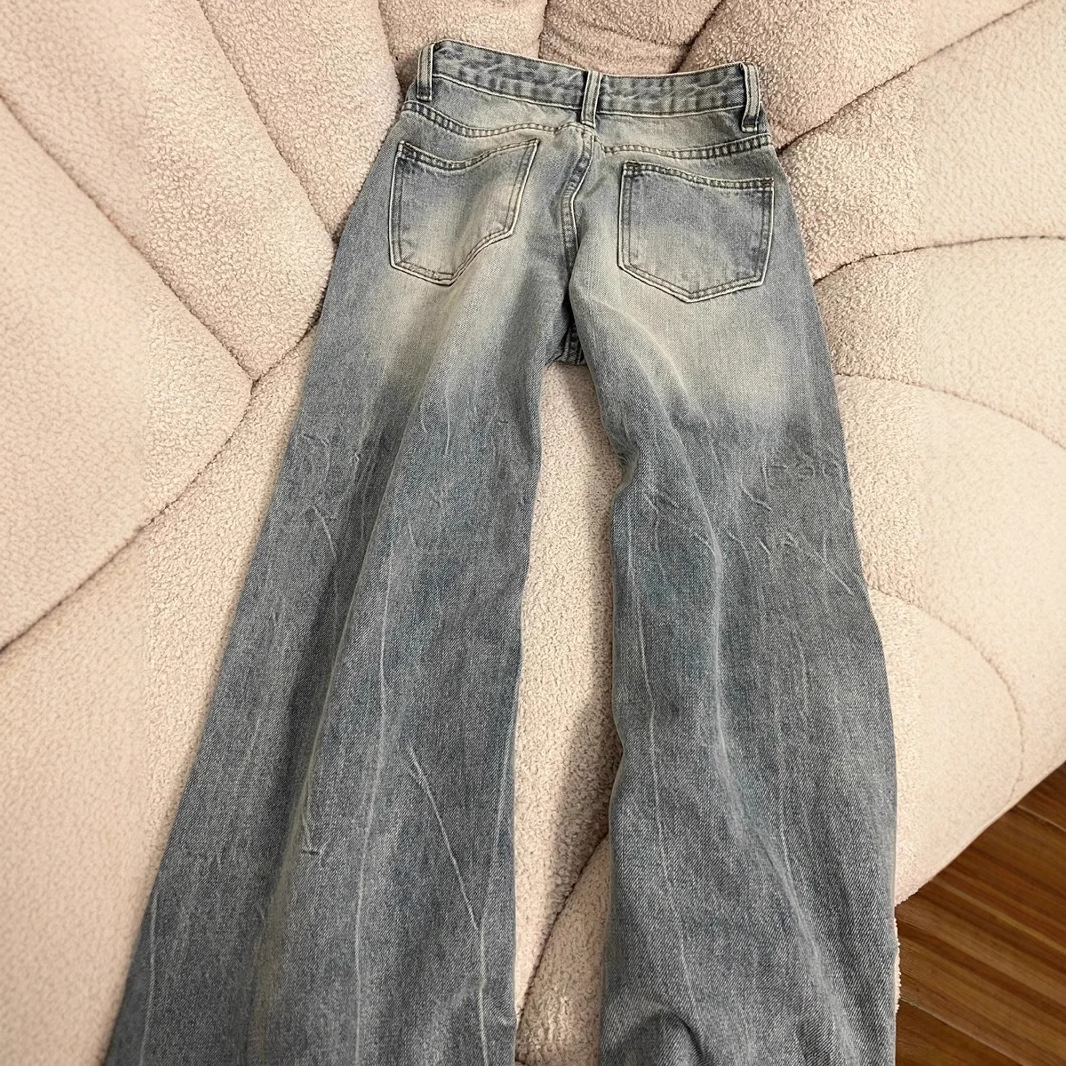 아메리칸 스타일 빈티지 바느질 마체테 넓은 다리 청바지 여성의 작은 느슨한 슬리밍 스트레이트 바지 높은 허리 바지스토어 가기