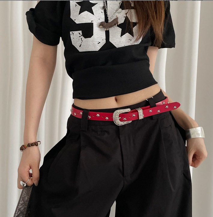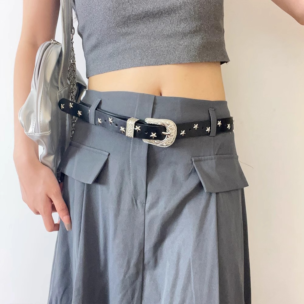 아메리칸 레트로 오각별 여성용 벨트 여성용 다용도 고급 벨트 2024 새로운 틈새 디자인 액세서리스토어 가기