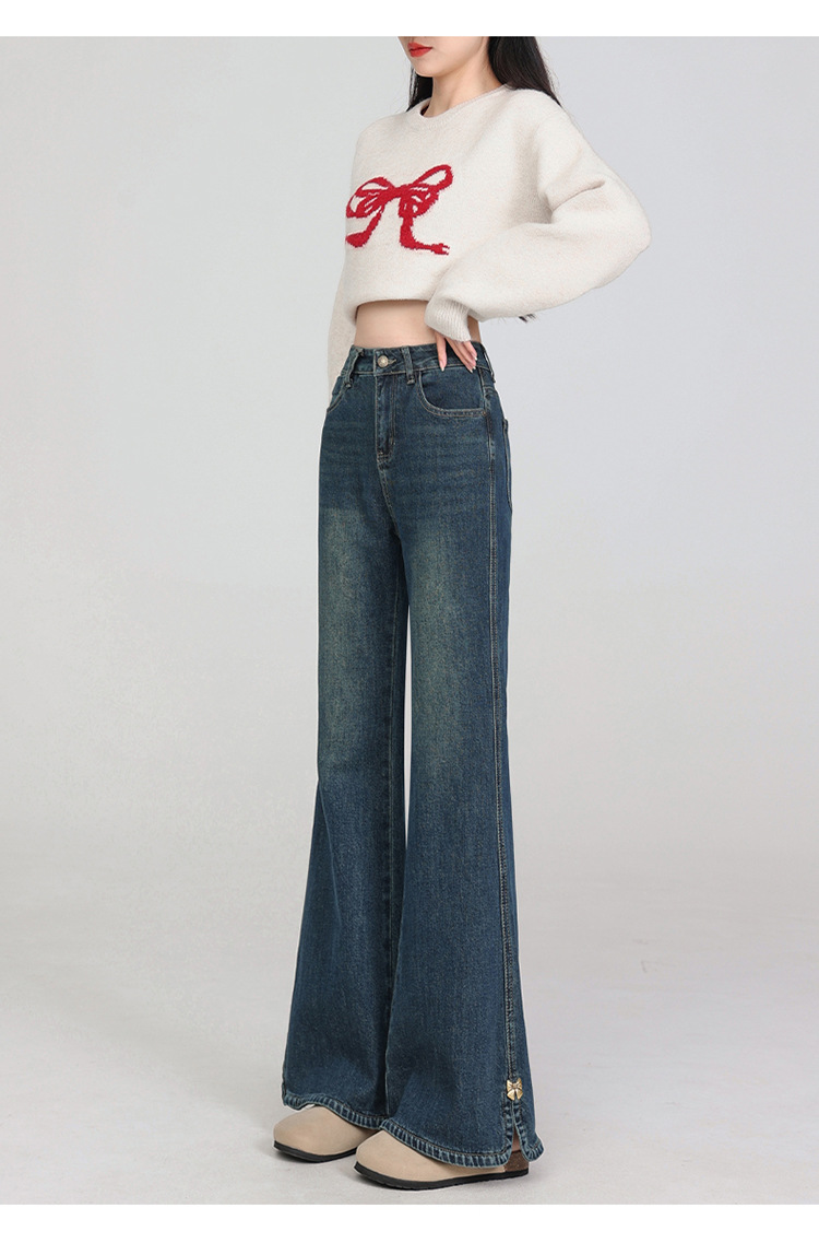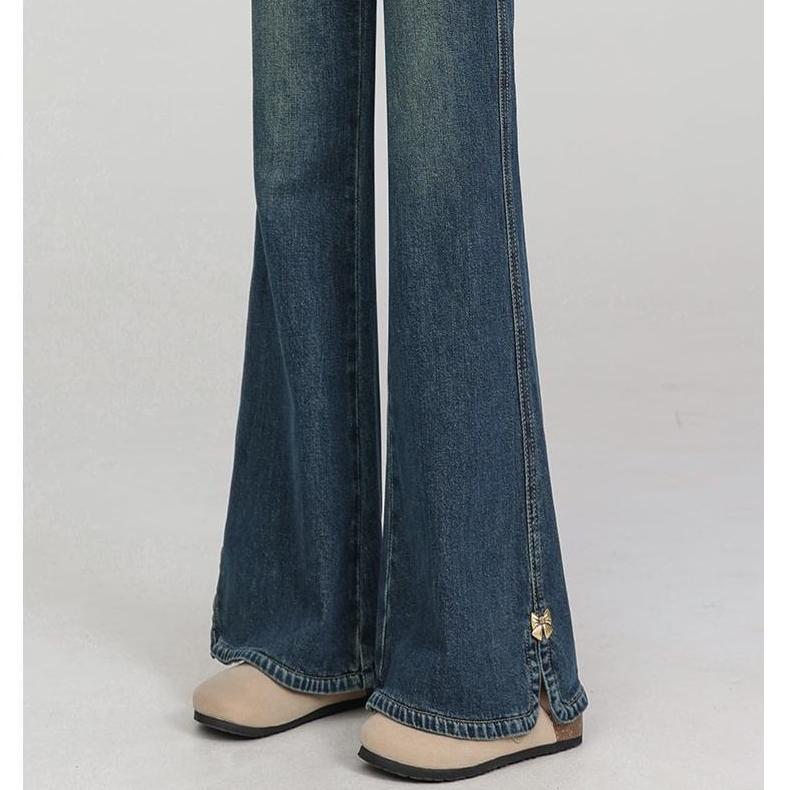 빈티지 마이크로 블레 청바지 여성 2025 새로운 스타일 작은 높은 허리 슬리밍 올 매치 걸레 스플릿 호스 슈 바지스토어 가기