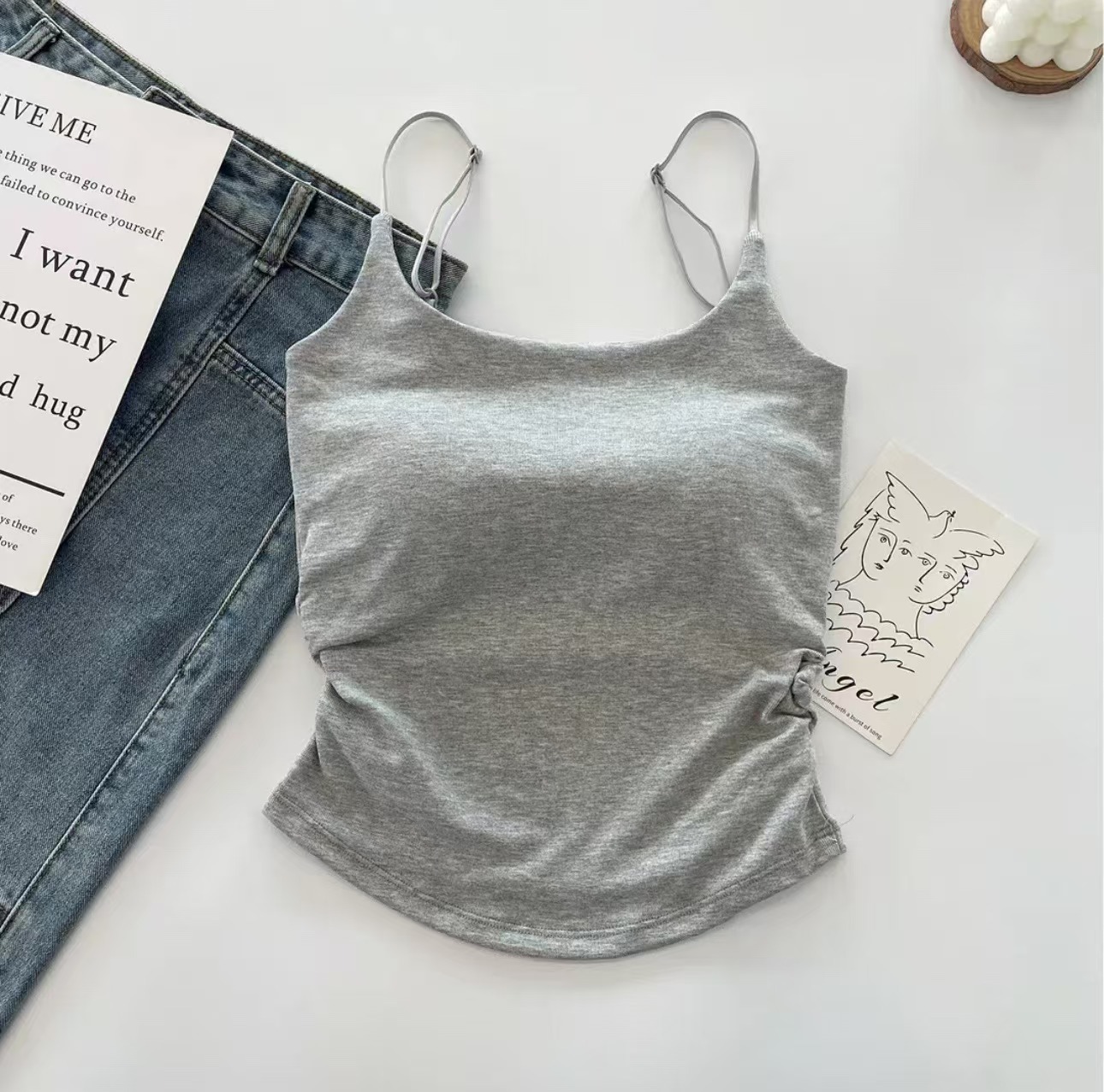 여름 신선한 코튼 카미 솔 디자인 감각 흉부 패드 외부 착용 슬리밍 여성을위한 아름다운 백탑스토어 가기