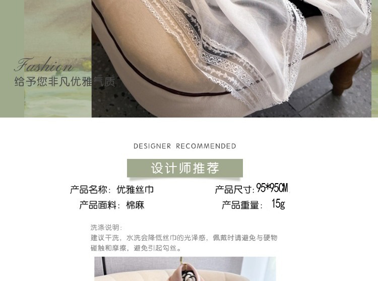 여름 목도리 봄과 가을 패션 실크 스카프 린넨 레이스면과 린넨 얇은 스카프 공장 도매스토어 가기