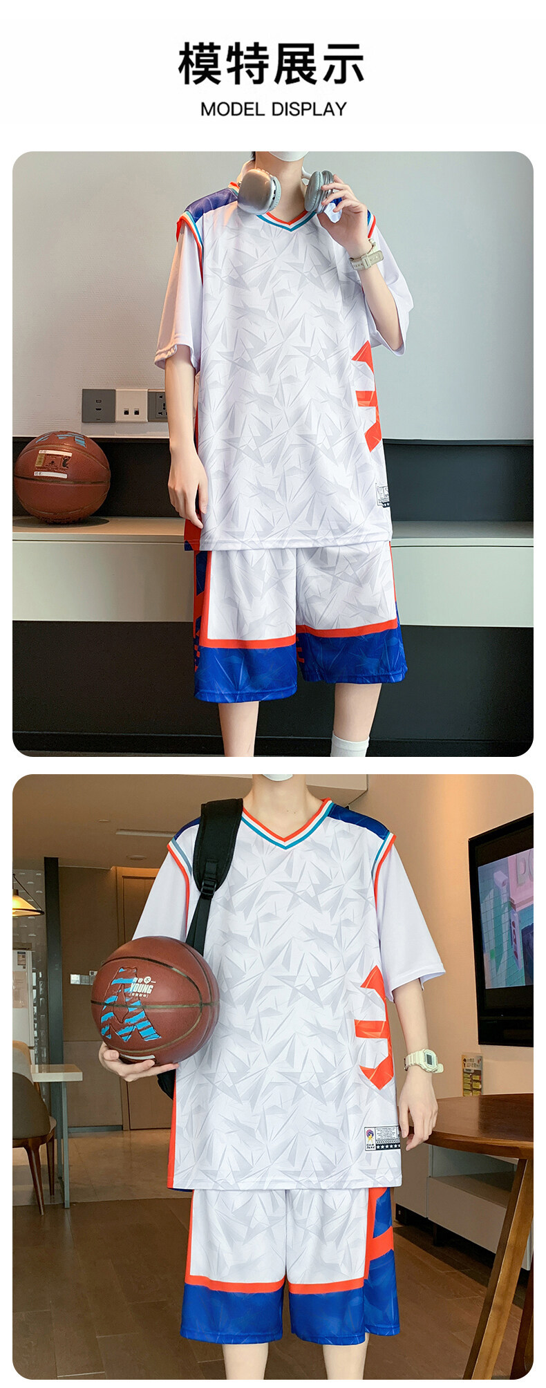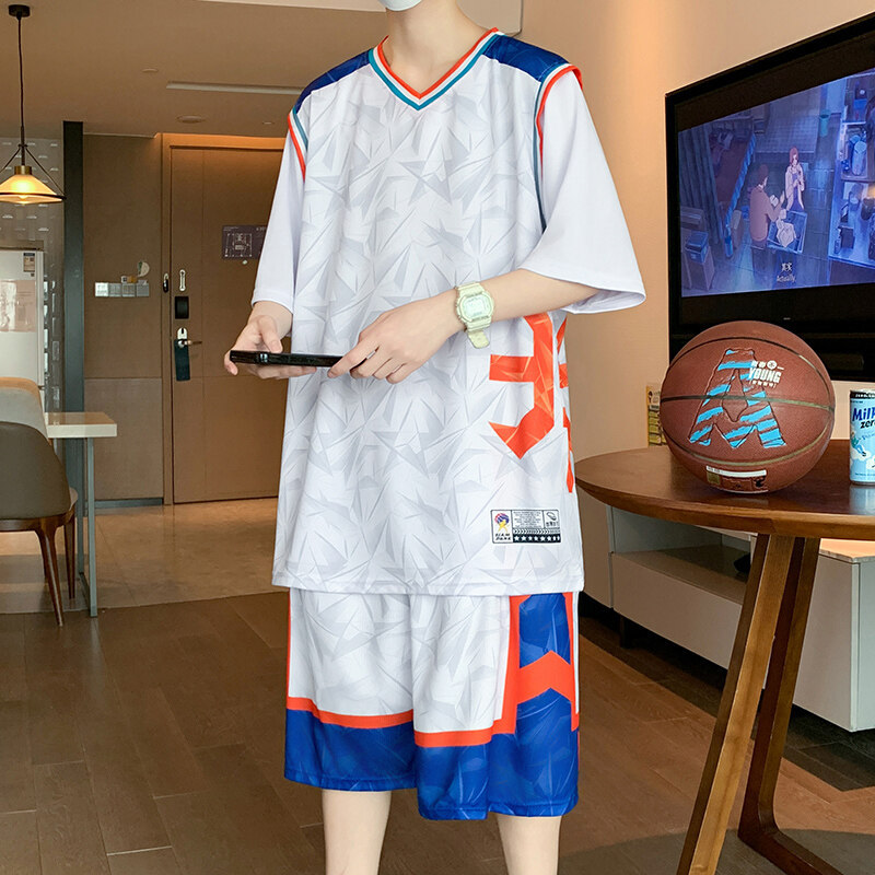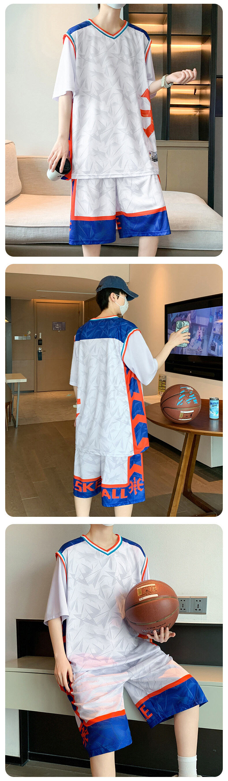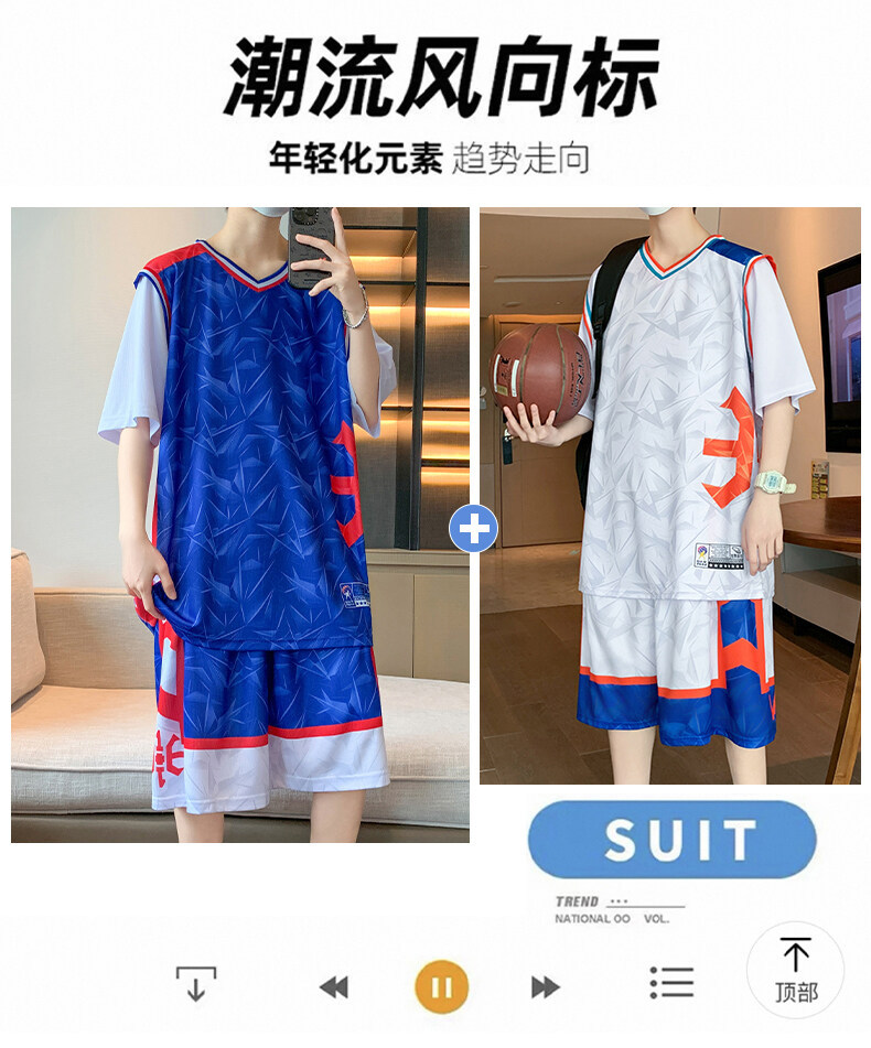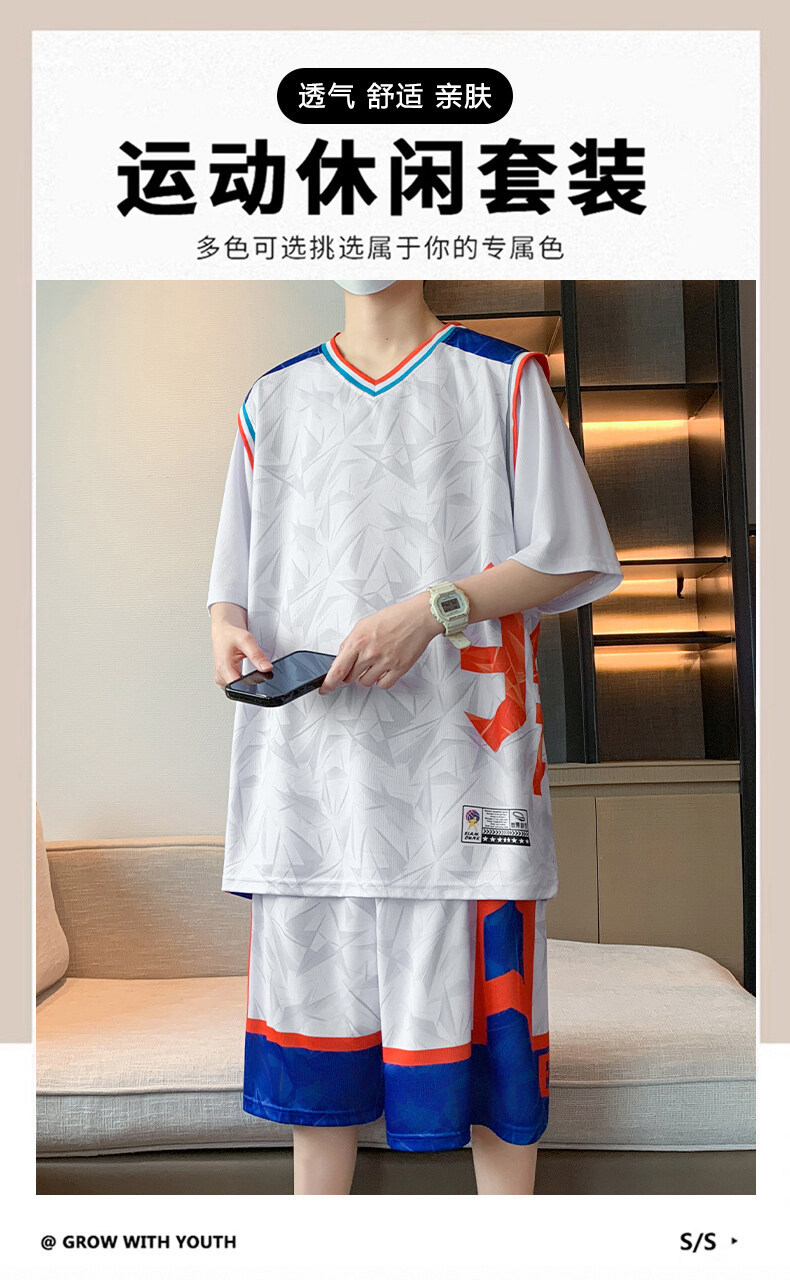 청소년 레저 스포츠 세트 남자 여름 아이스 실크 빠른 건조 농구 세트 학생 가짜 투피스 티셔츠 반바지 저지