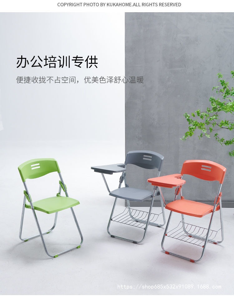 필기 보드 플라스틱 강철 프레임이 통합 된 테이블 보드 회의 의자 학생 교육 및 교육 기관이있는 접이식 교육 의자스토어 가기