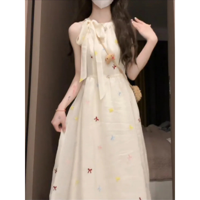 귀여운 Ins 달콤한 허리 활 원피스 여름 새로운 2024 허리 슬리밍 부드러운 요정 원피스스토어 가기