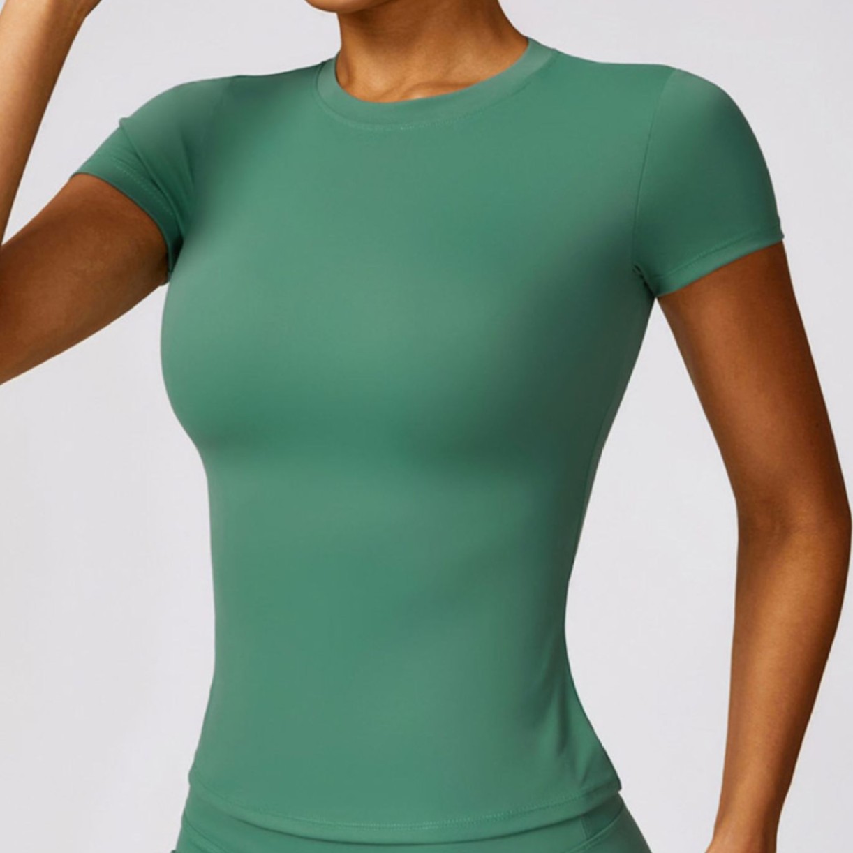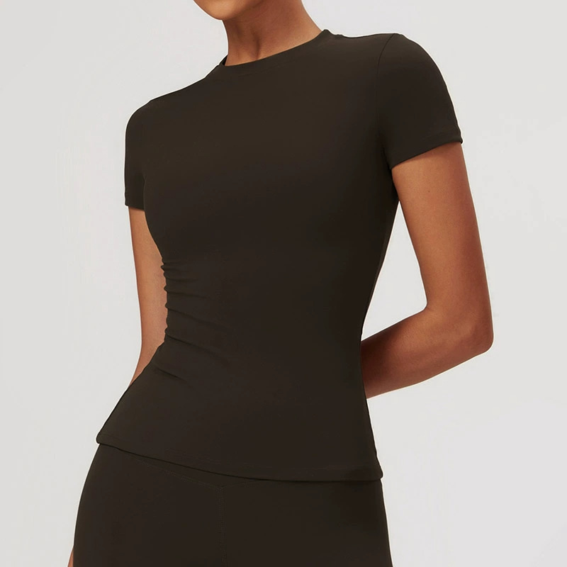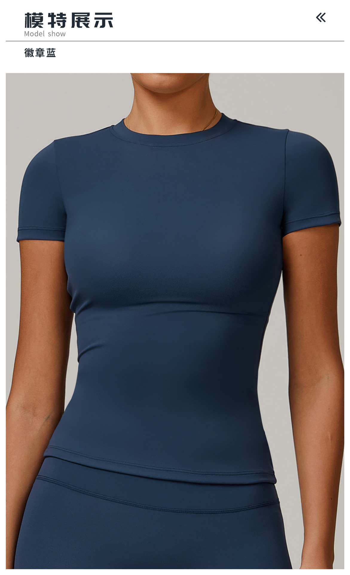 유럽과 미국의 샌딩 빠른 건조 반팔 티셔츠 요가 의류 여성 여름 피트니스 탑 야외 슬림 핏 크루 넥 러닝 스포츠웨어