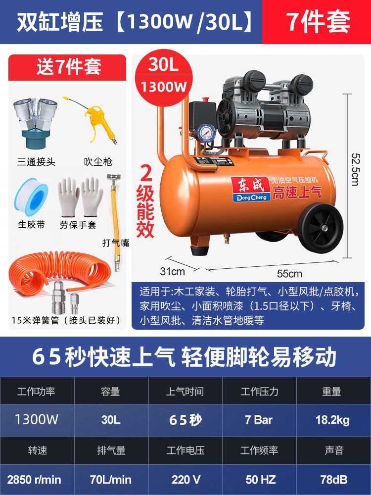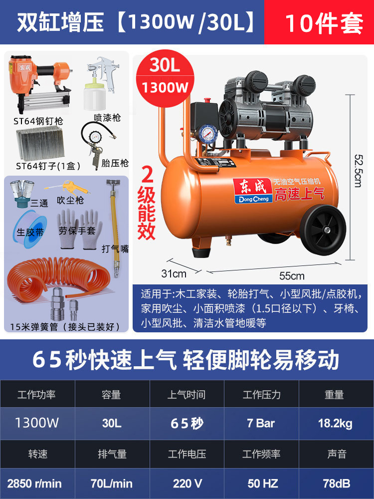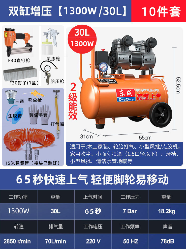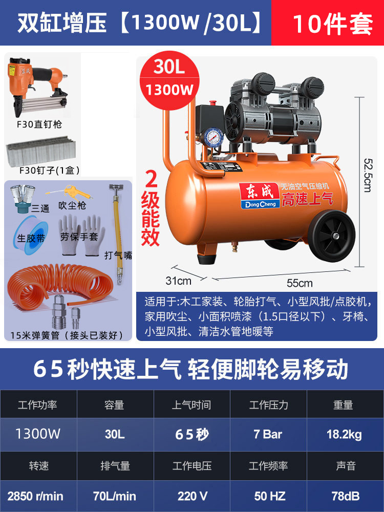 • 30L [1300W/65초 급속 공기 공급] + 7종 세트 + F30 스트레이트 네일건