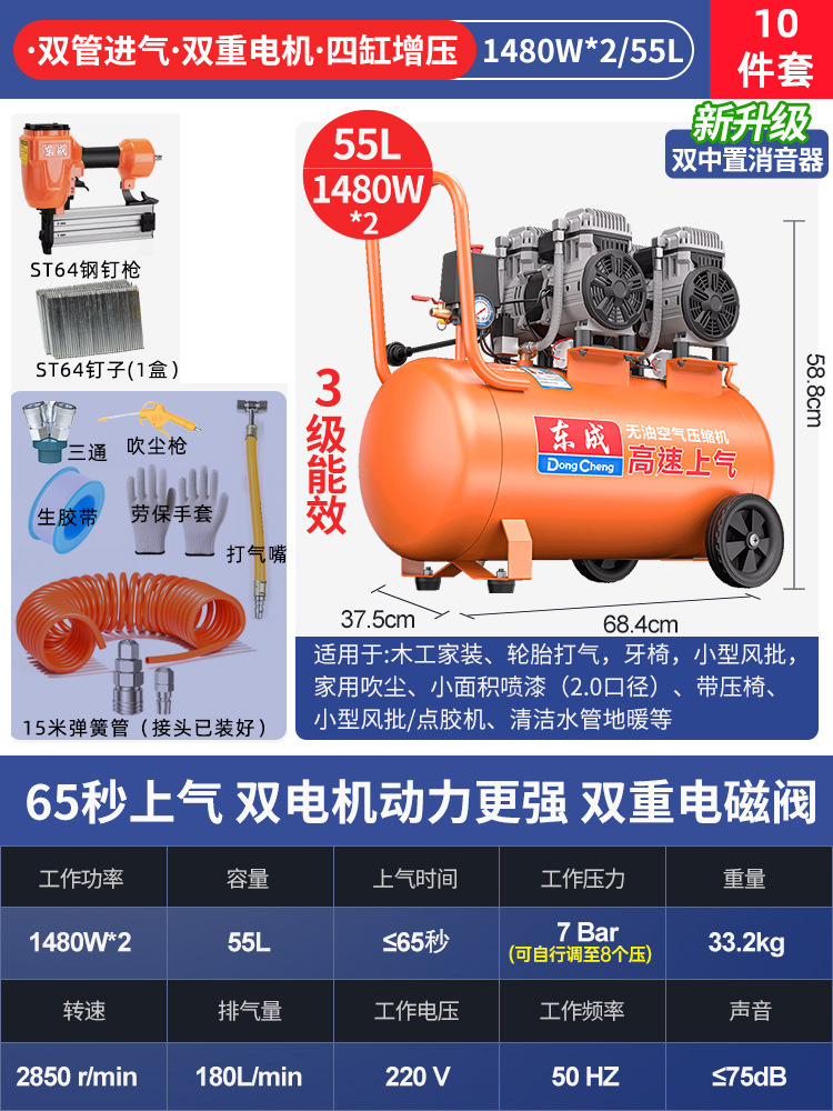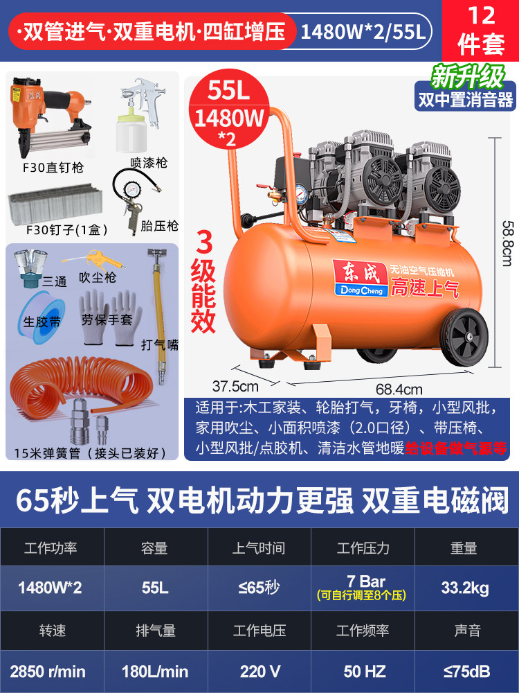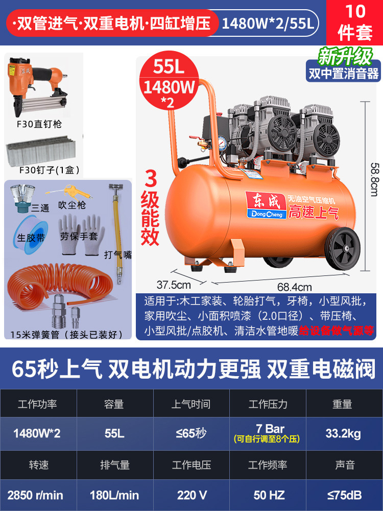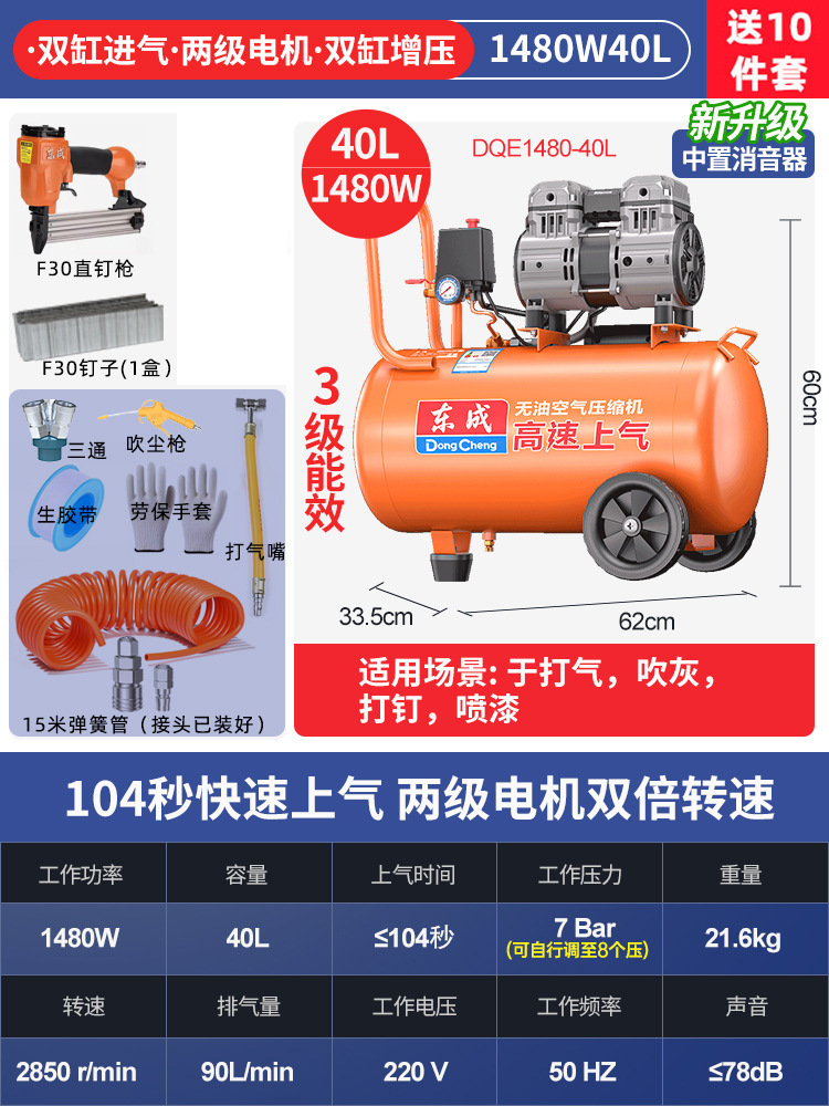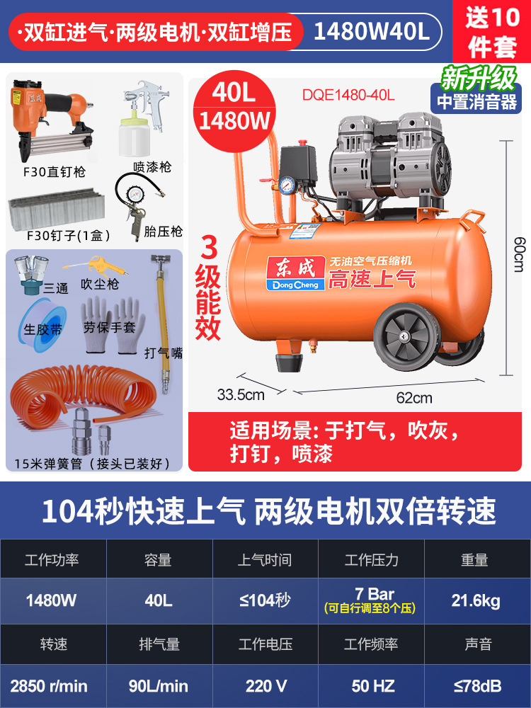 Dongcheng 오일 프리 자동 공기 압축기 220v 소형 공기 압축기 편리한 목공 네일 건 Dongcheng 공기 펌프스토어 가기