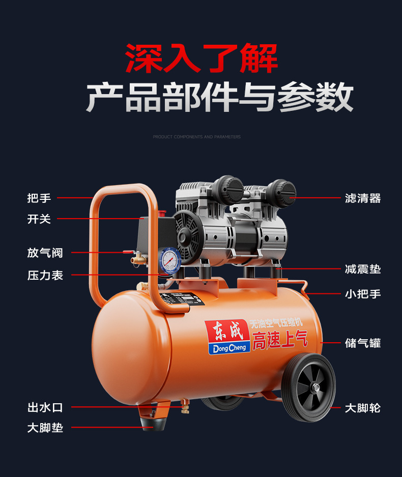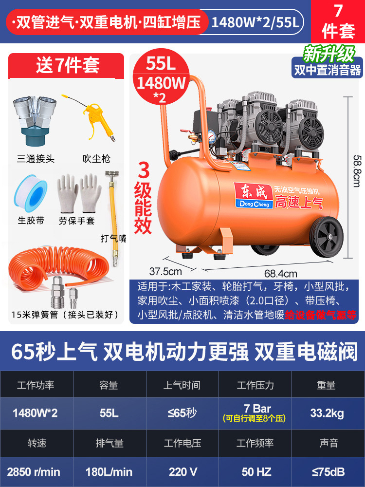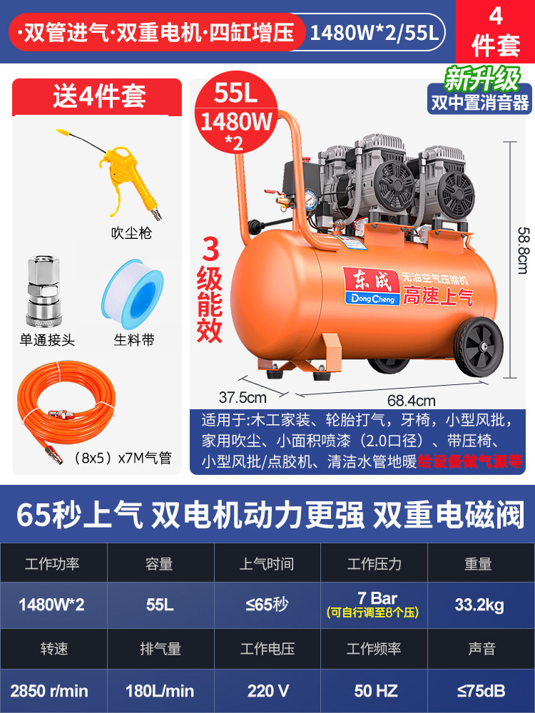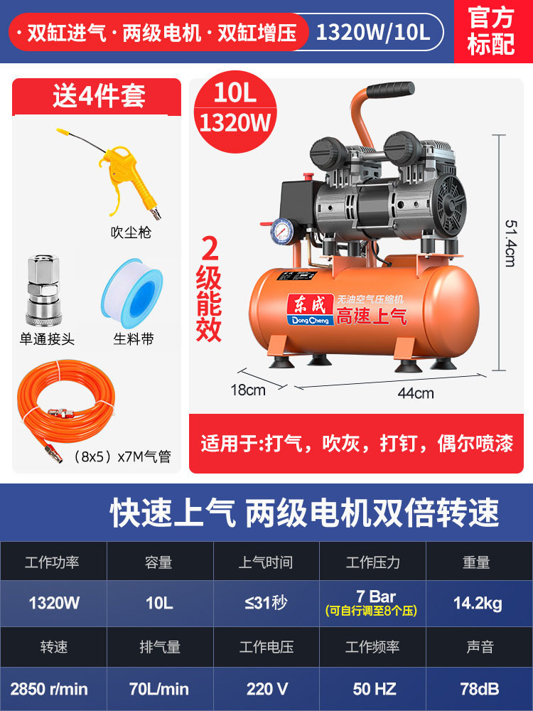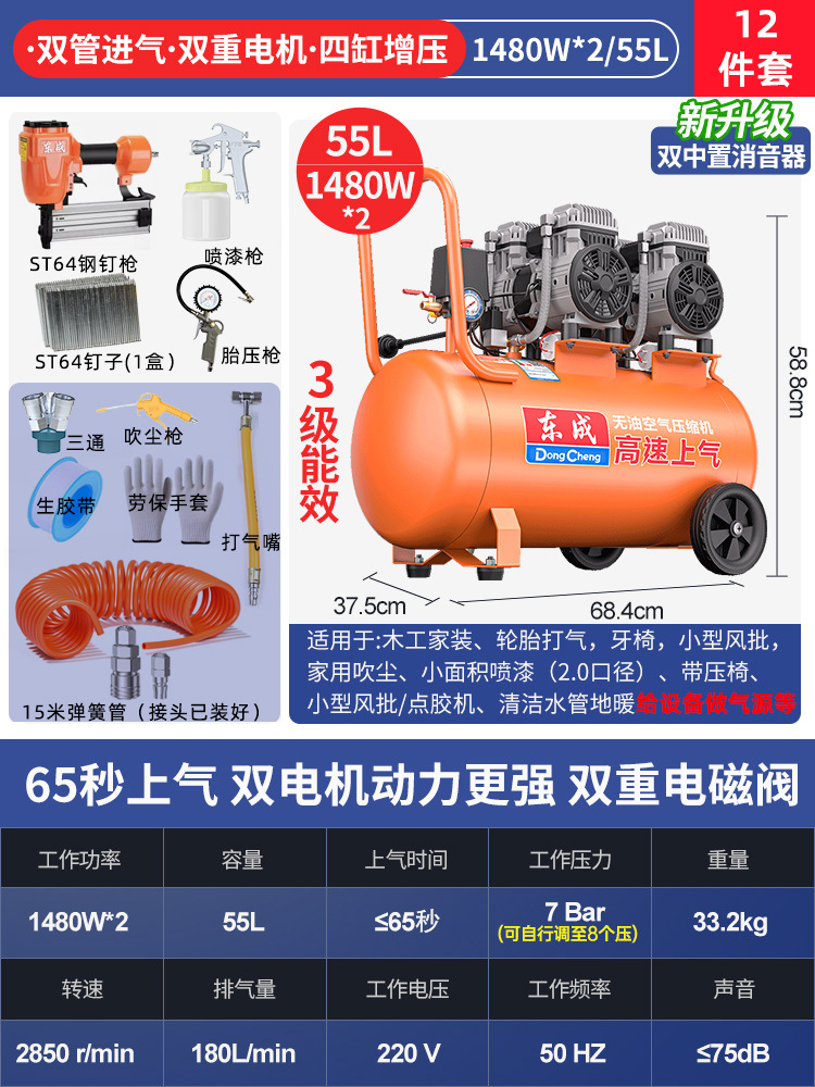 Dongcheng 오일 프리 자동 공기 압축기 220v 소형 공기 압축기 편리한 목공 네일 건 Dongcheng 공기 펌프스토어 가기