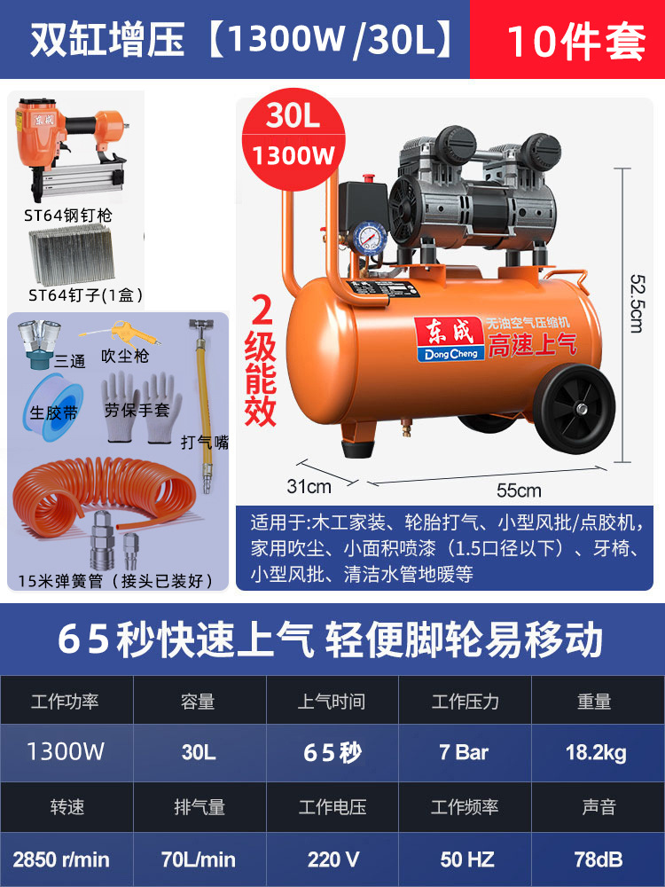 • 30L [1300W/65초 급속 공기 공급] + 9종 세트 + ST64 스틸 네일건