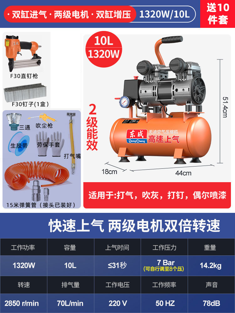 • 10L [1320W/22초 급속 공기 공급] + 7종 세트 + F30 스트레이트 네일건