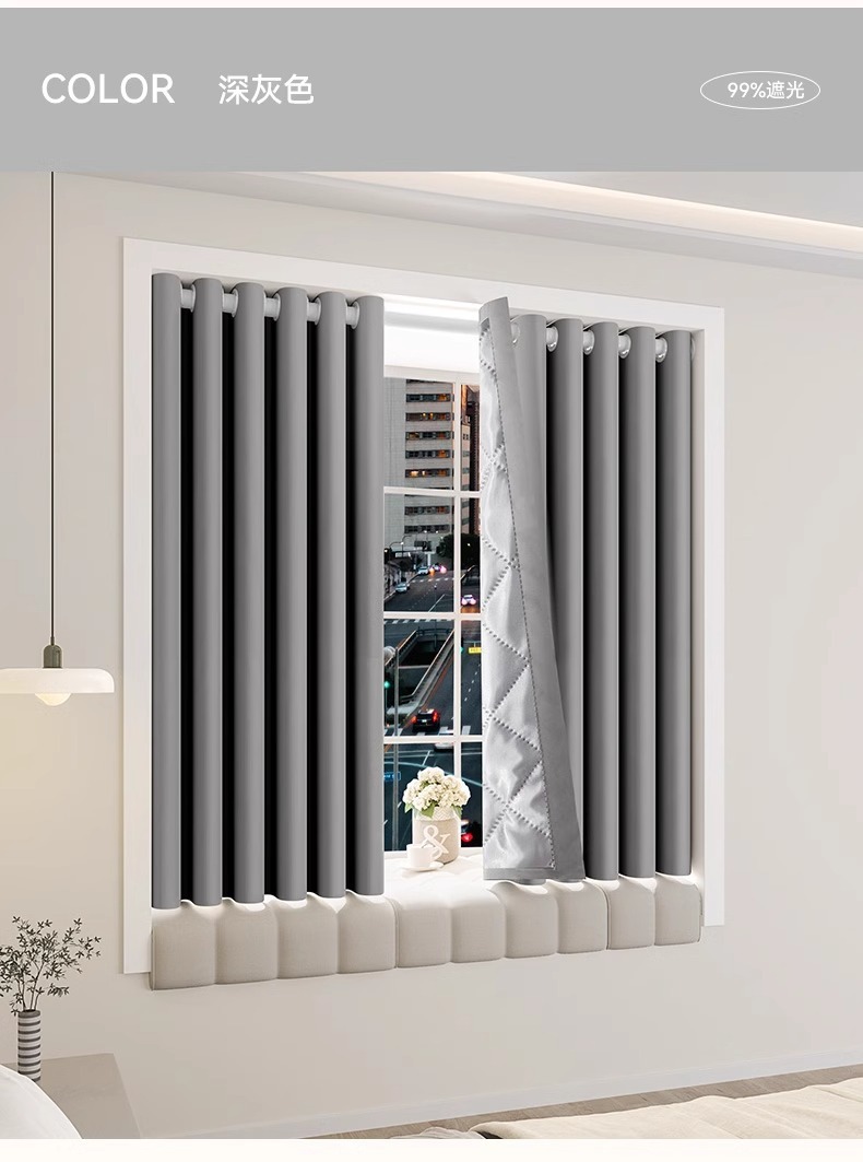 강한 방음 커튼 구멍이없는 설치 두꺼운 차폐 단열 태양 보호 파티션 에어컨 소음 감소스토어 가기