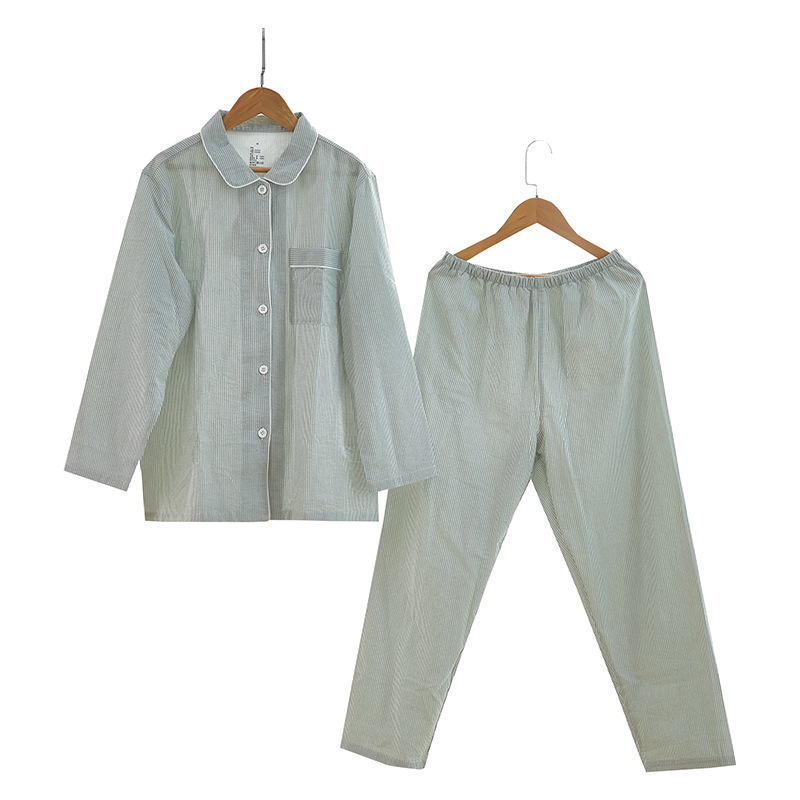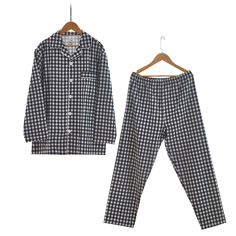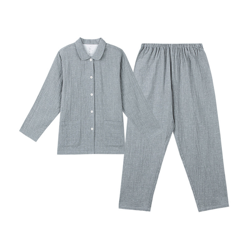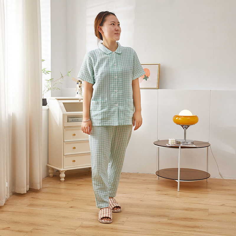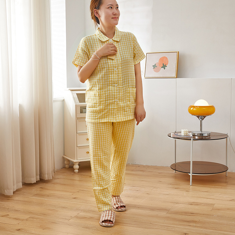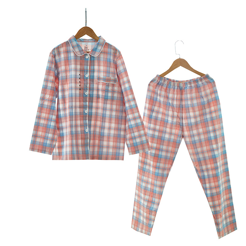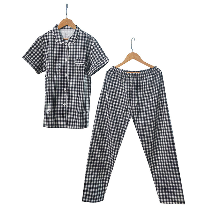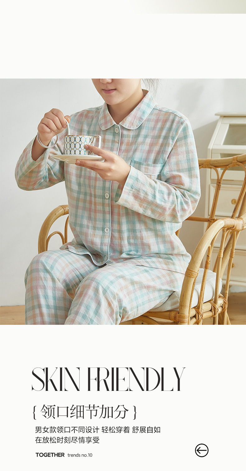 여성용 오리지널 품질 잠옷, 더블 레이어 거즈 순면 긴팔 봄, 가을, 여름 얇은 반팔 남성 커플 격자 무늬 가정복스토어 가기