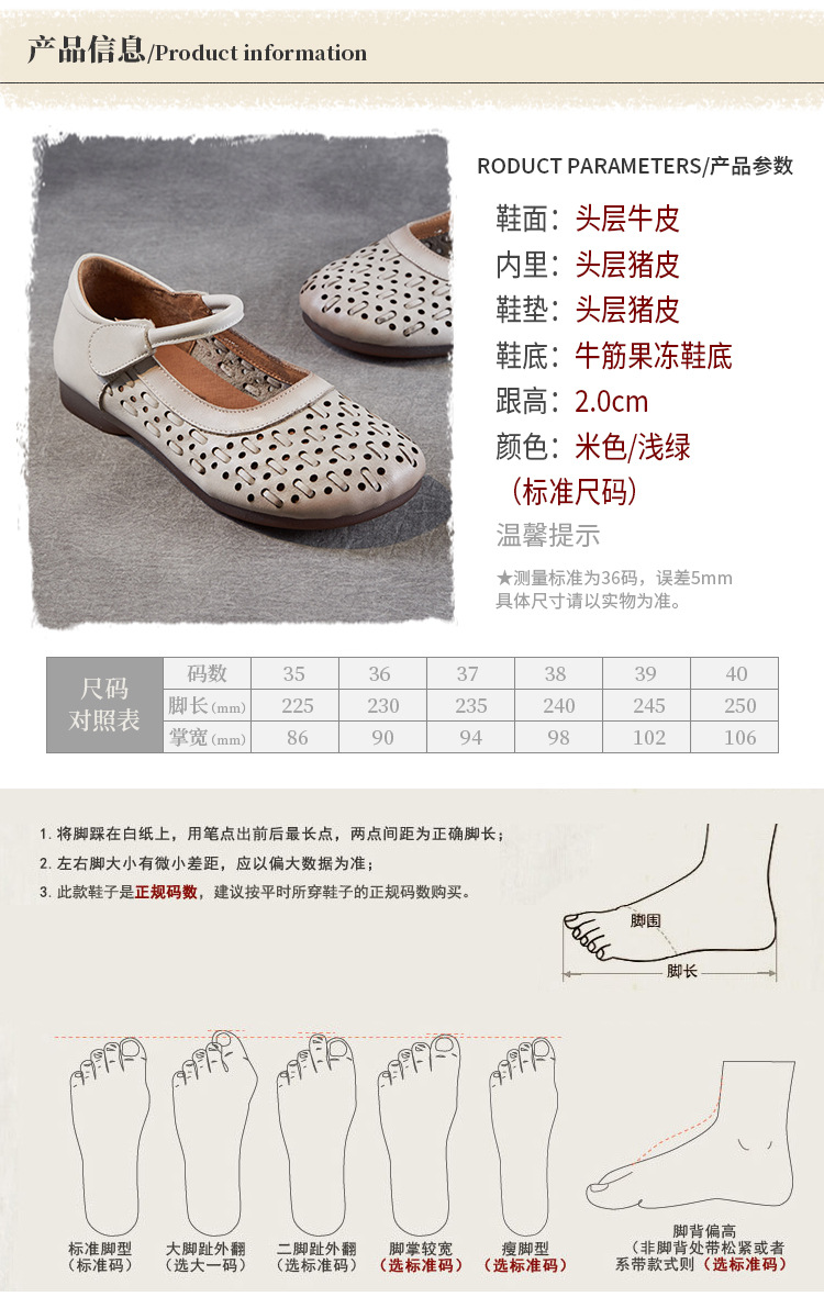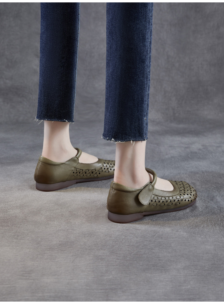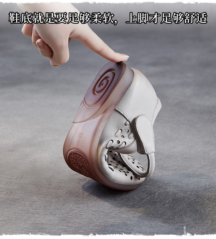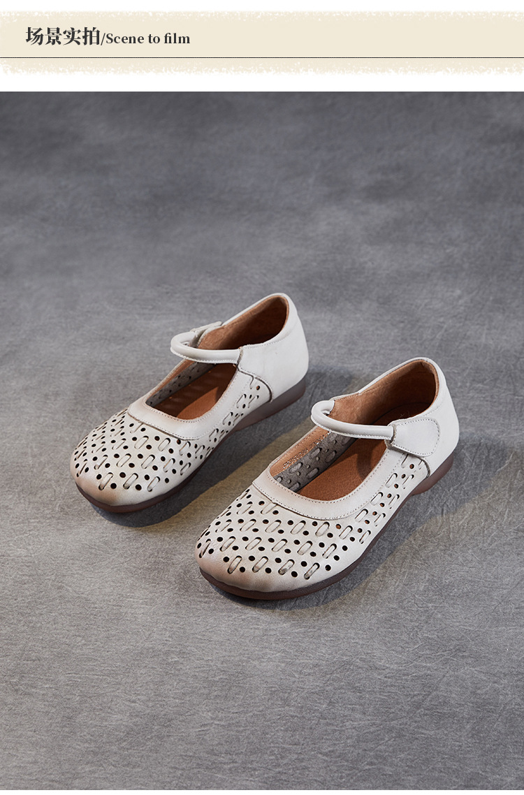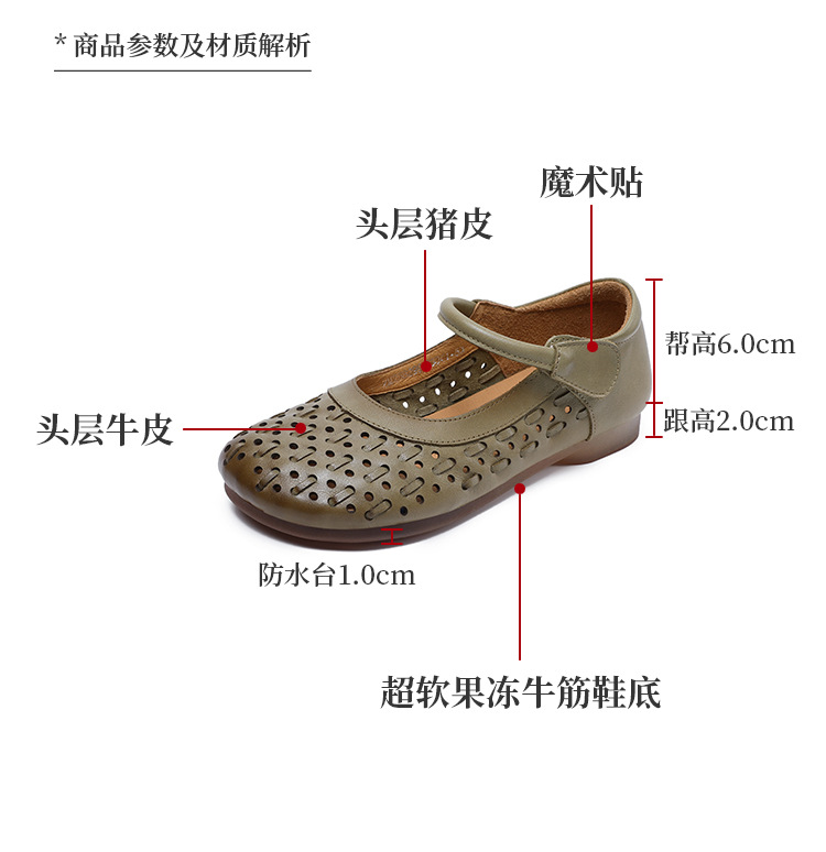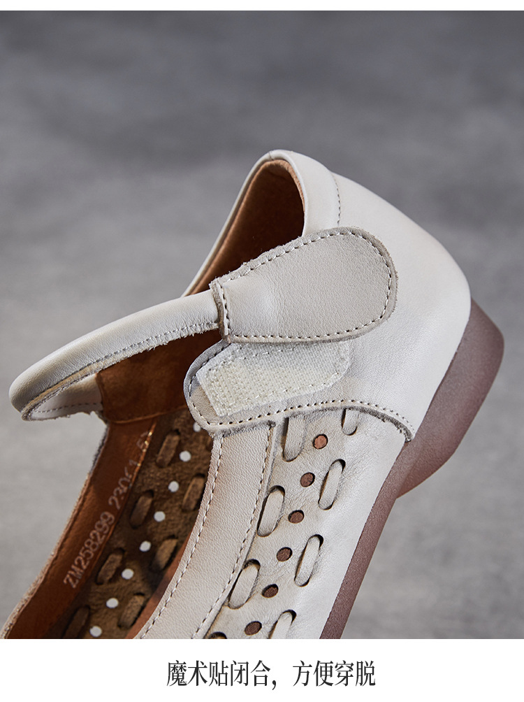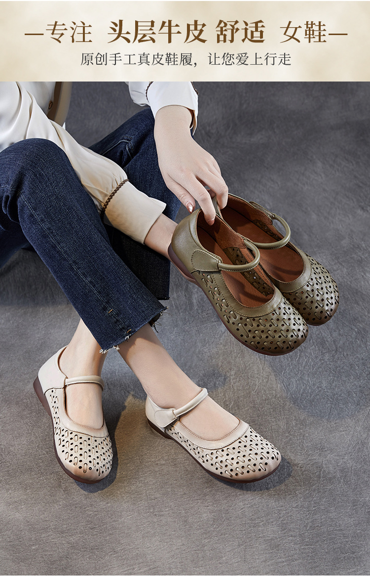 정품 가죽 싱글 레이어 신발 여성 2025 년 봄과 여름 새로운 중공 통기성 샌들 플랫 슈즈 소프트 단독 편안한 중년 엄마 신발스토어 가기