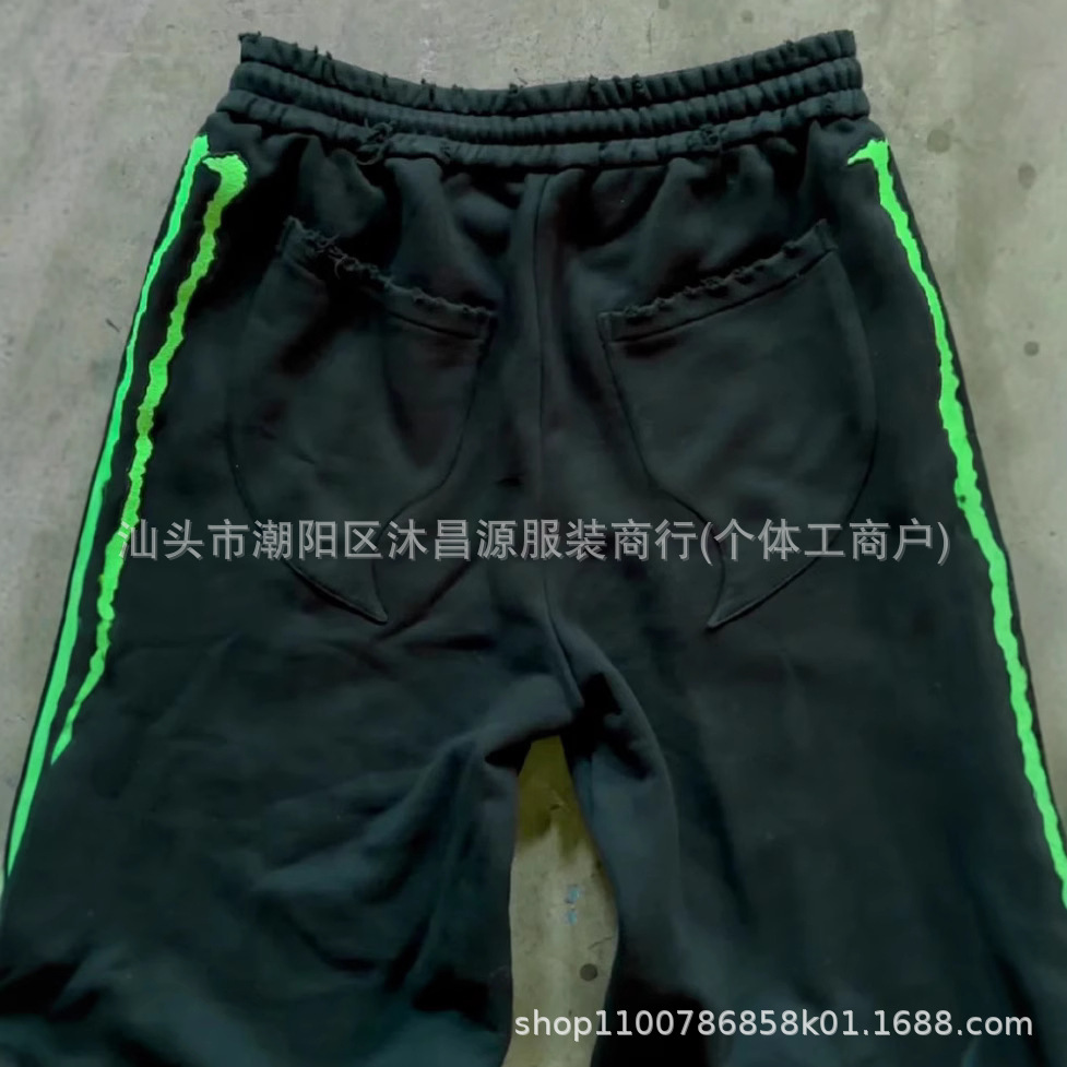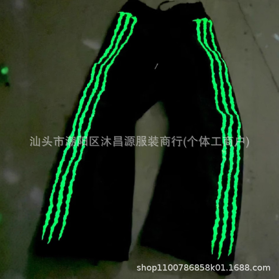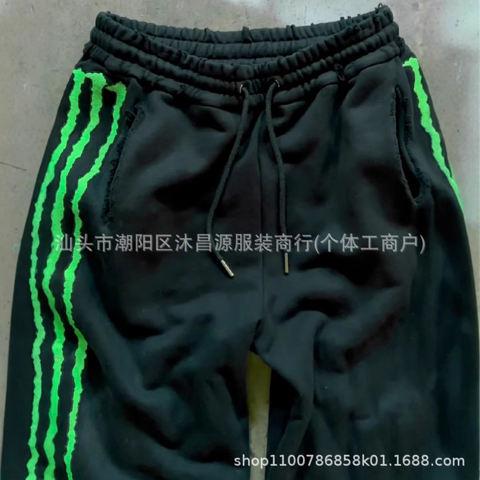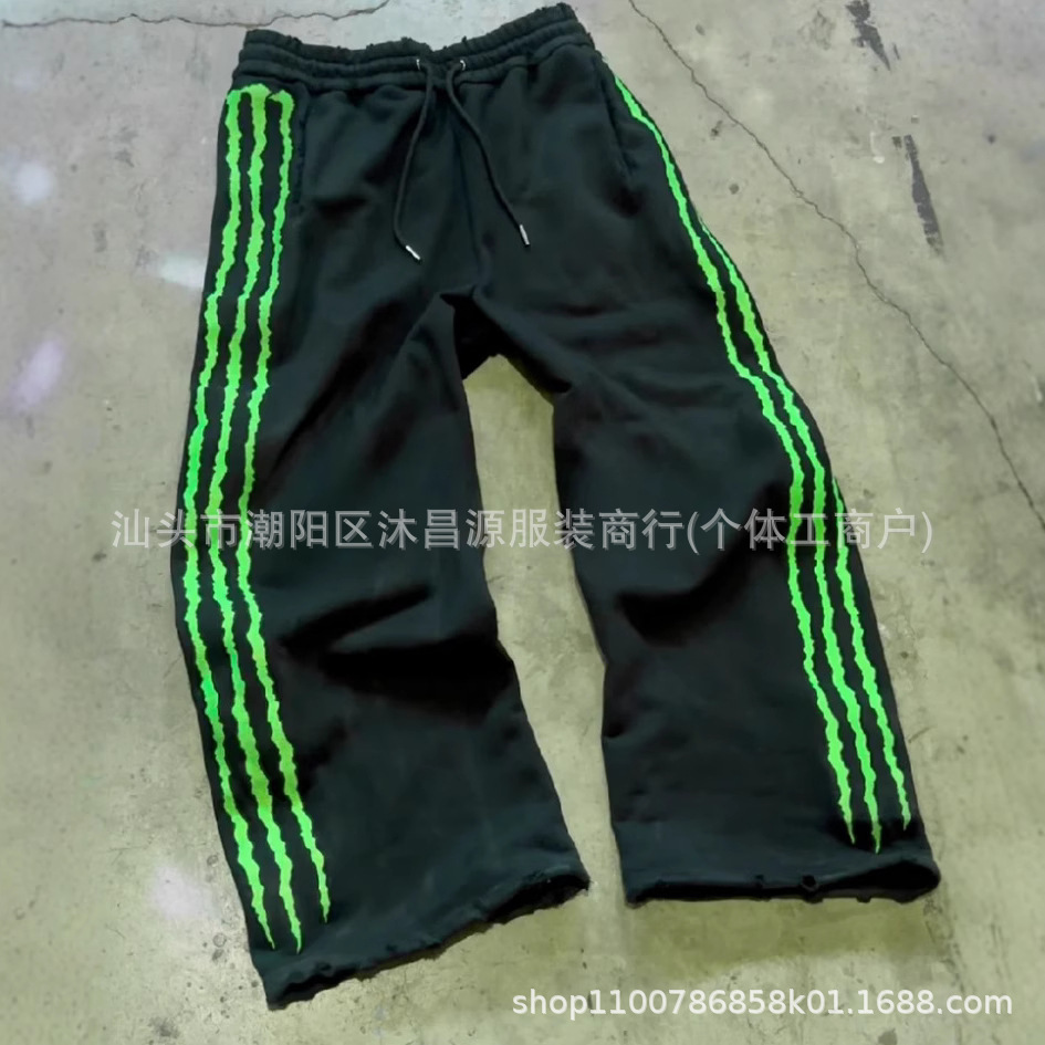 국경 간 대외 무역 봄과 가을 새로운 형광 그린 스트라이프 올스타 캐주얼 바지 남녀 패션 느슨한 스포츠 바지