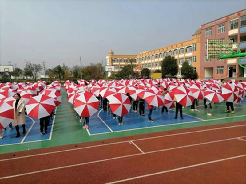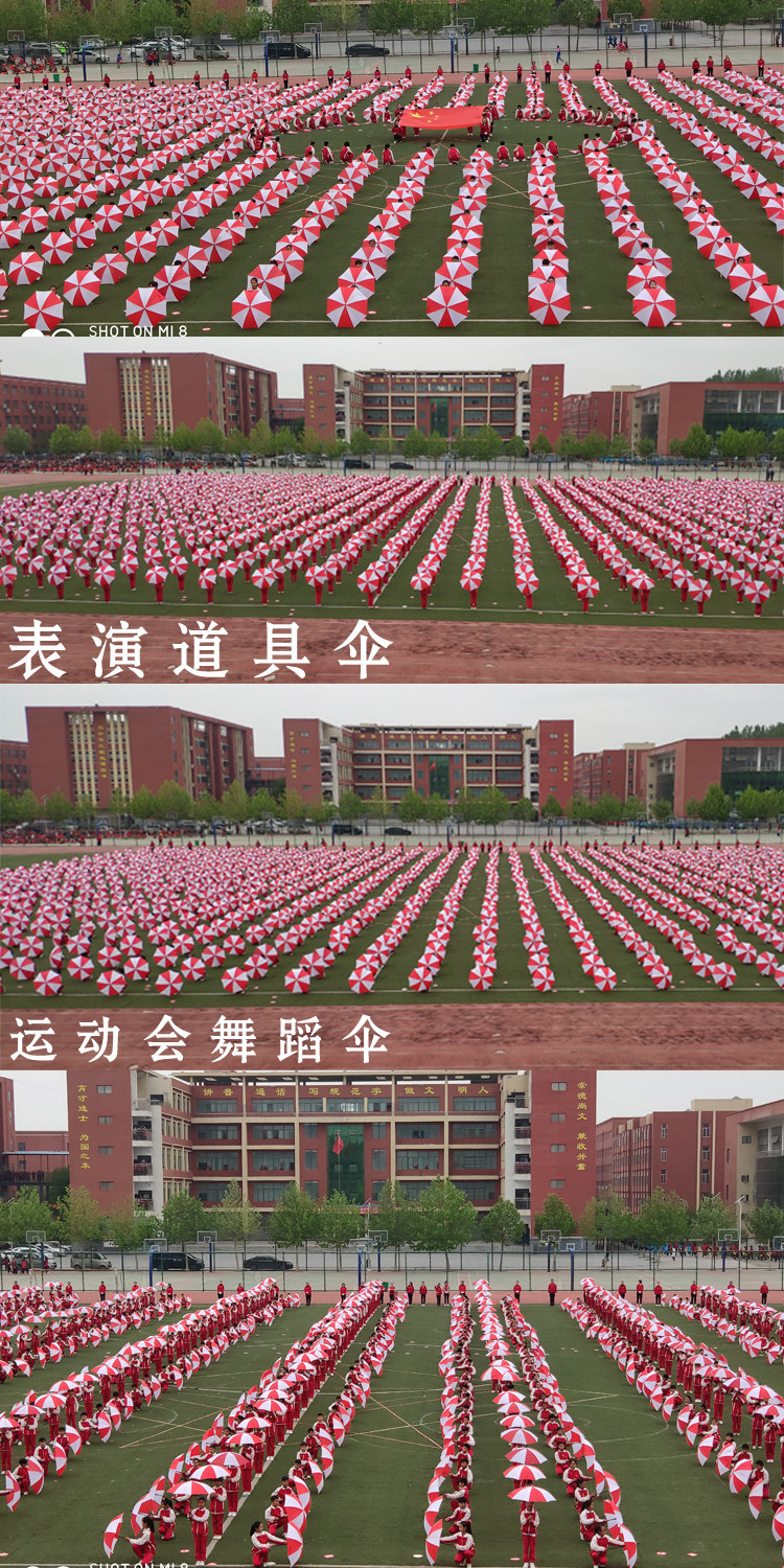 빨간색과 흰색 우산 설날 운동회 그룹 공연 슈퍼 풍차 댄스 리허설 광고 빨간색과 노란색스토어 가기