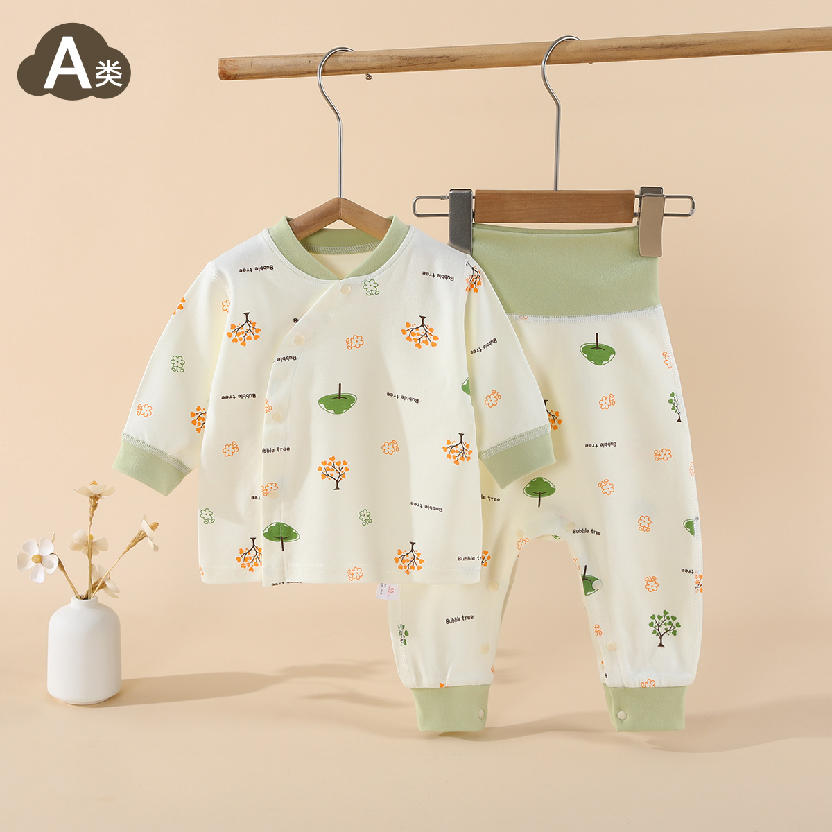 아기 면화 속옷 세트 도매 봄과 가을 어린이 가정 의류 유아베이스 세트 아기 잠옷 스냅 가랑이스토어 가기