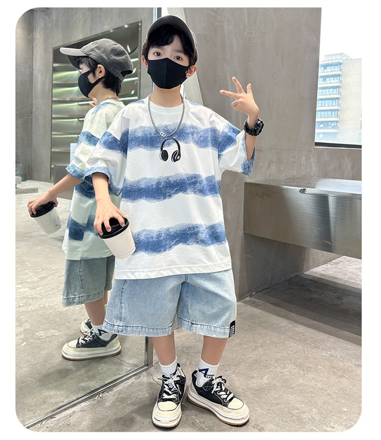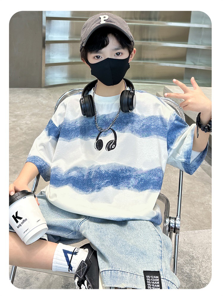 남아 여름 얇은 반팔 티셔츠 2026 신상 아동 여름옷 스트릿 스타일 반팔 순면 티셔츠 멋진 남자아이 티셔츠스토어 가기