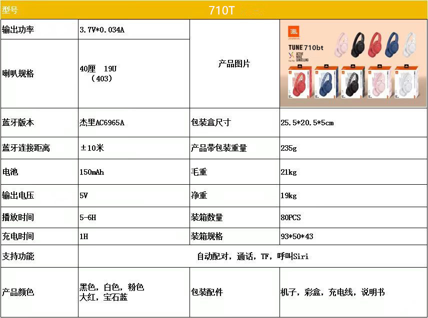 JBL710BT 헤드셋 무선 블루투스 헤드셋 음성 낮은 대기 시간 로고 국경 용 Huaqiang North