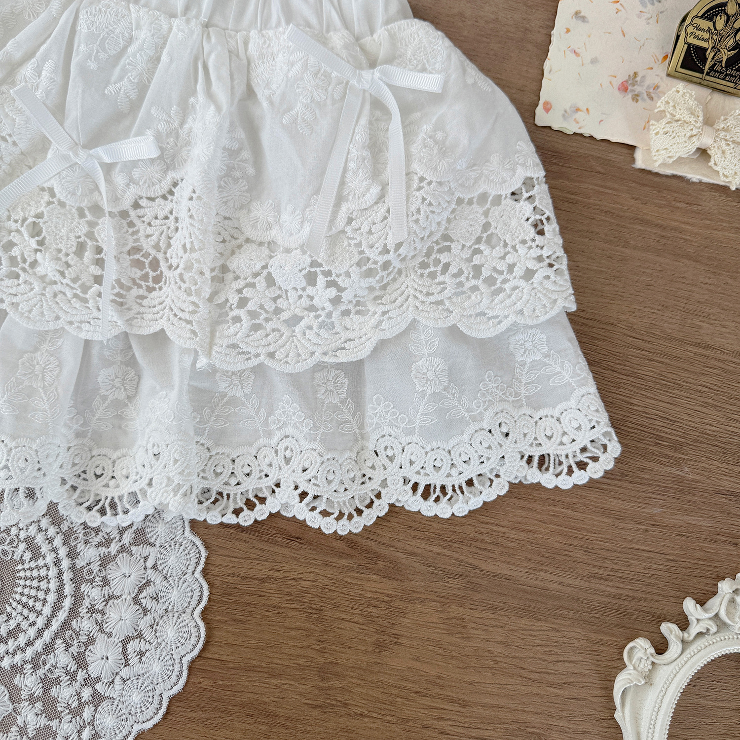 Cutemily 여름 소녀의 레이스 스커트 여성의 보물 자수 레이스 바느질 나비 연꽃 잎 투투 스커트스토어 가기