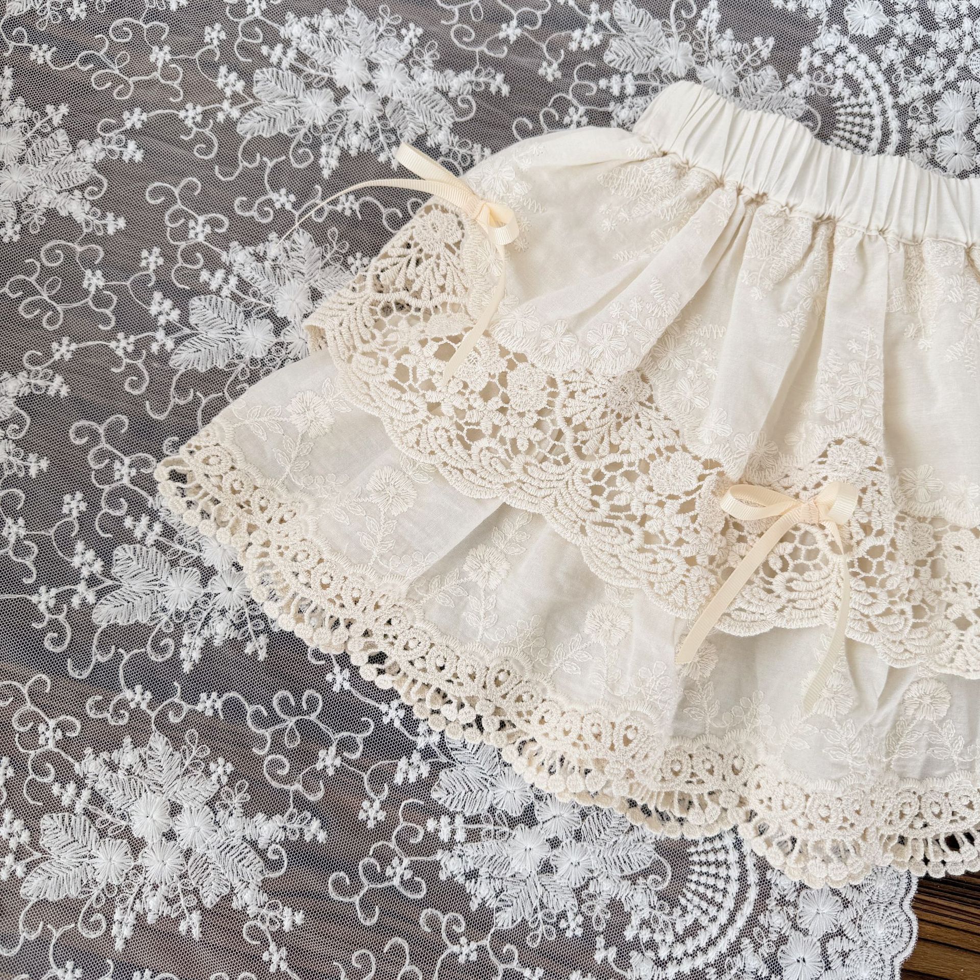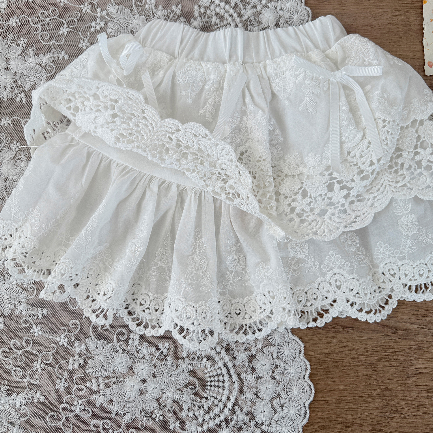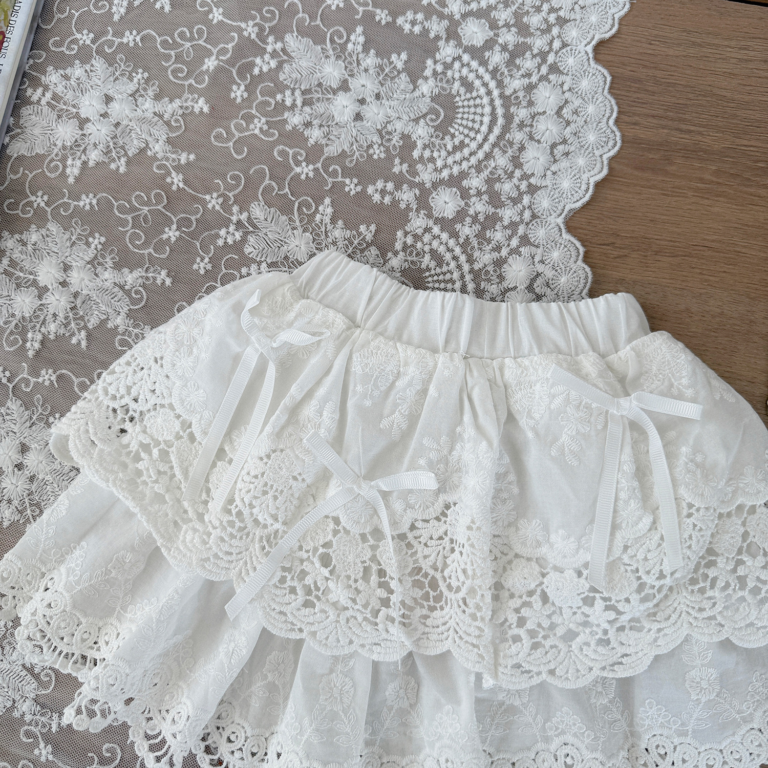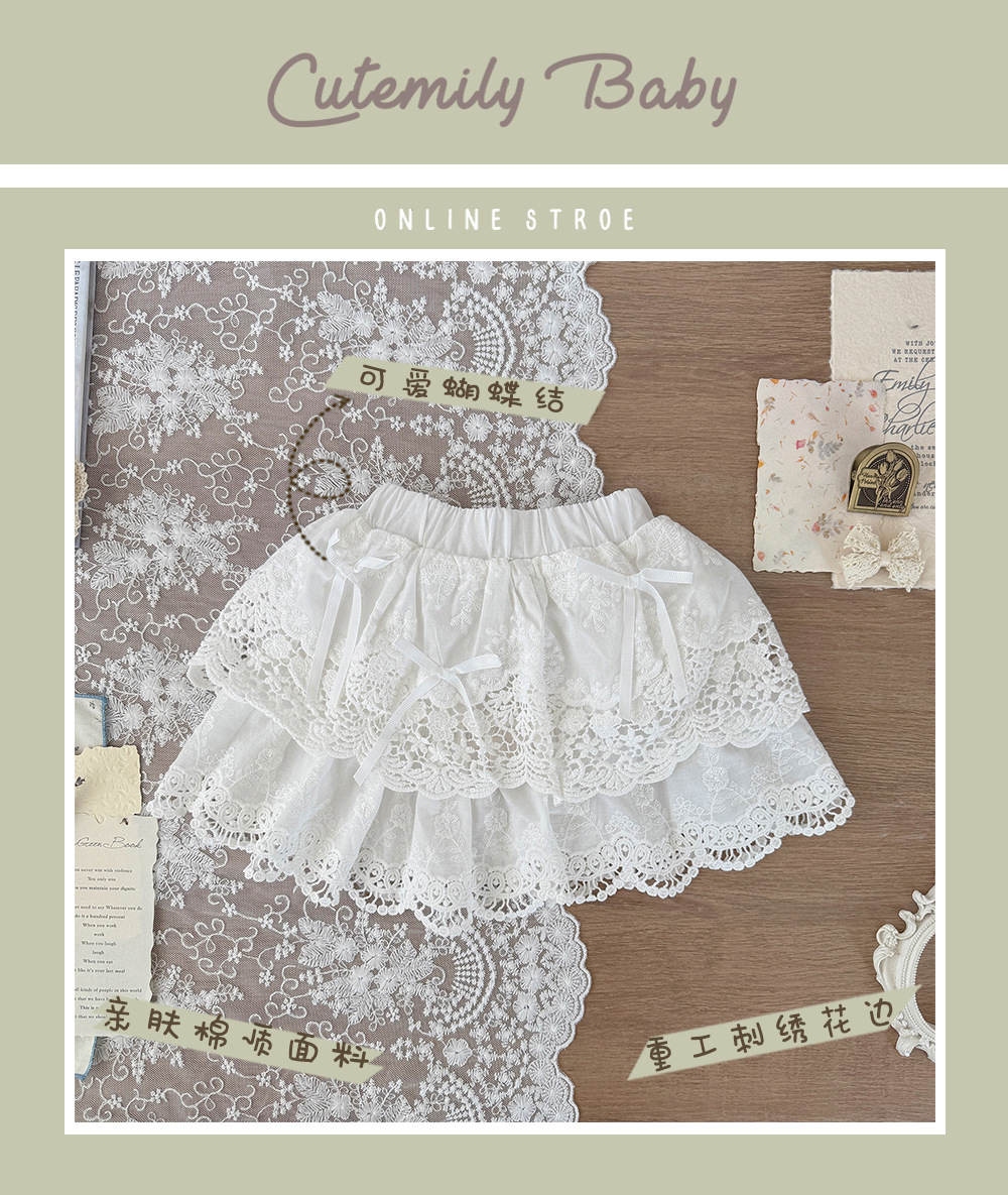 Cutemily 여름 소녀의 레이스 스커트 여성의 보물 자수 레이스 바느질 나비 연꽃 잎 투투 스커트